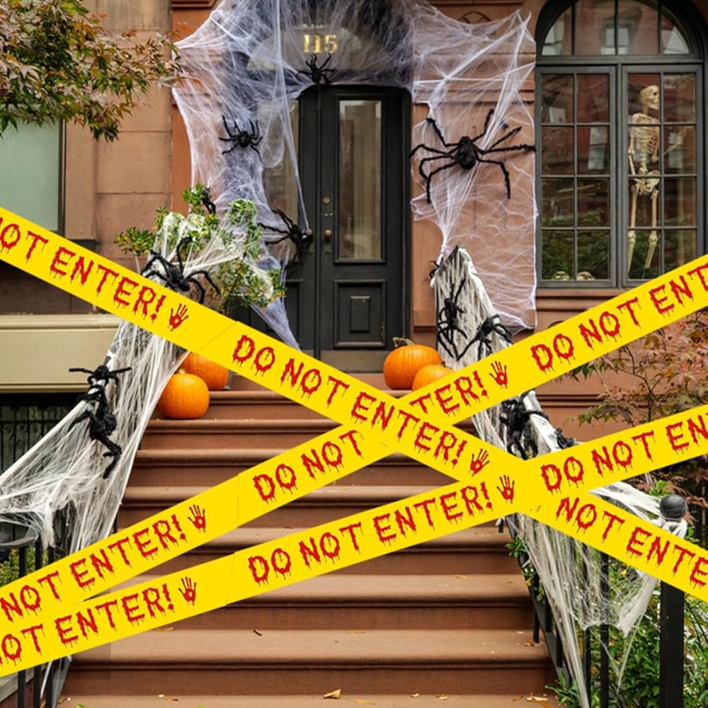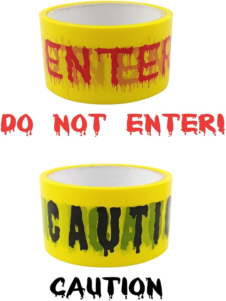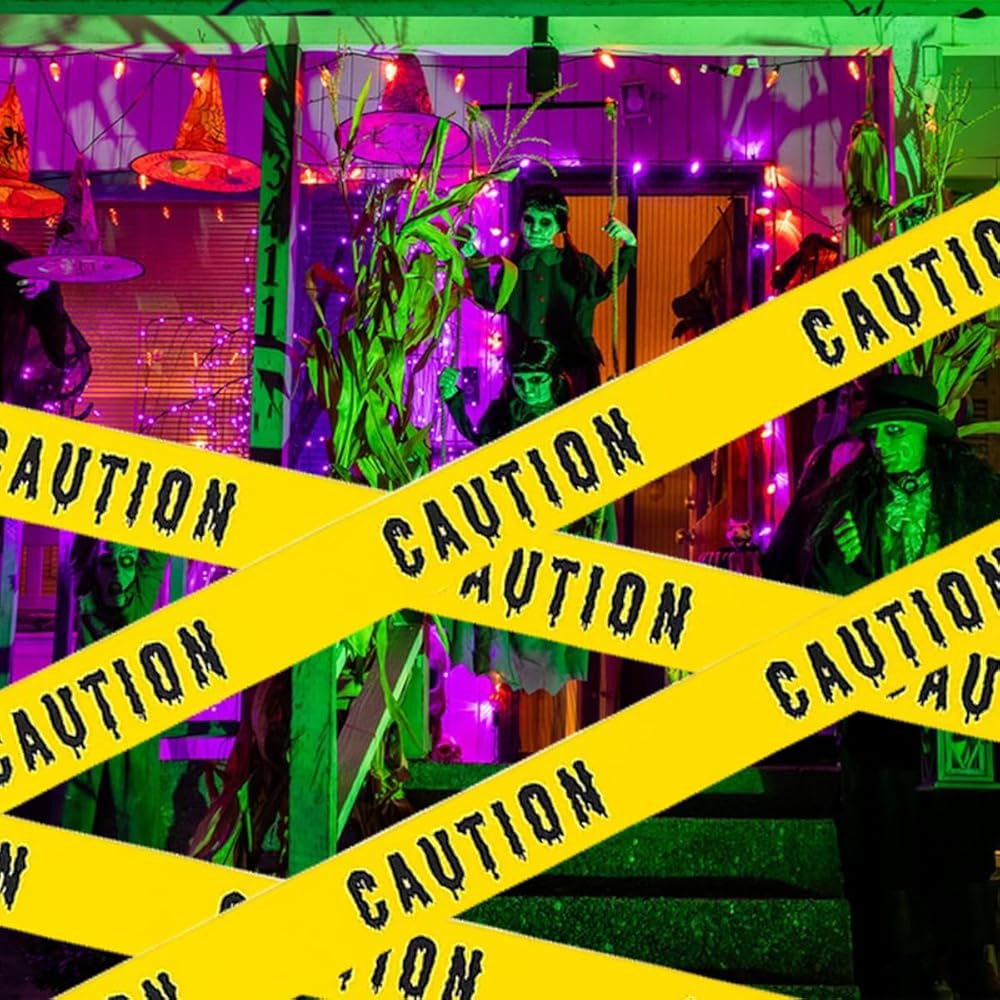 ألوان زاهية - شريط التحذير أصفر ساطع على عكس النص الأحمر والأسود، وهو ملفت للنظر للغاية، يضيف جو الهالوين