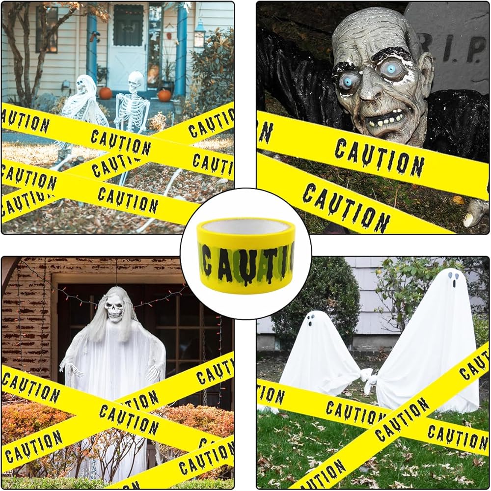 ديكورات الهالوين في الهواء الطلق - الشريط التحذيري لديكورات الهالوين المكون من قطعتين مثالي لديكورات الهالوين وديكورات الهالوين في الهواء الطلق، مثل الفناء والمناطق الخطرة والحفلات المخيفة وحفلات الهالوين
