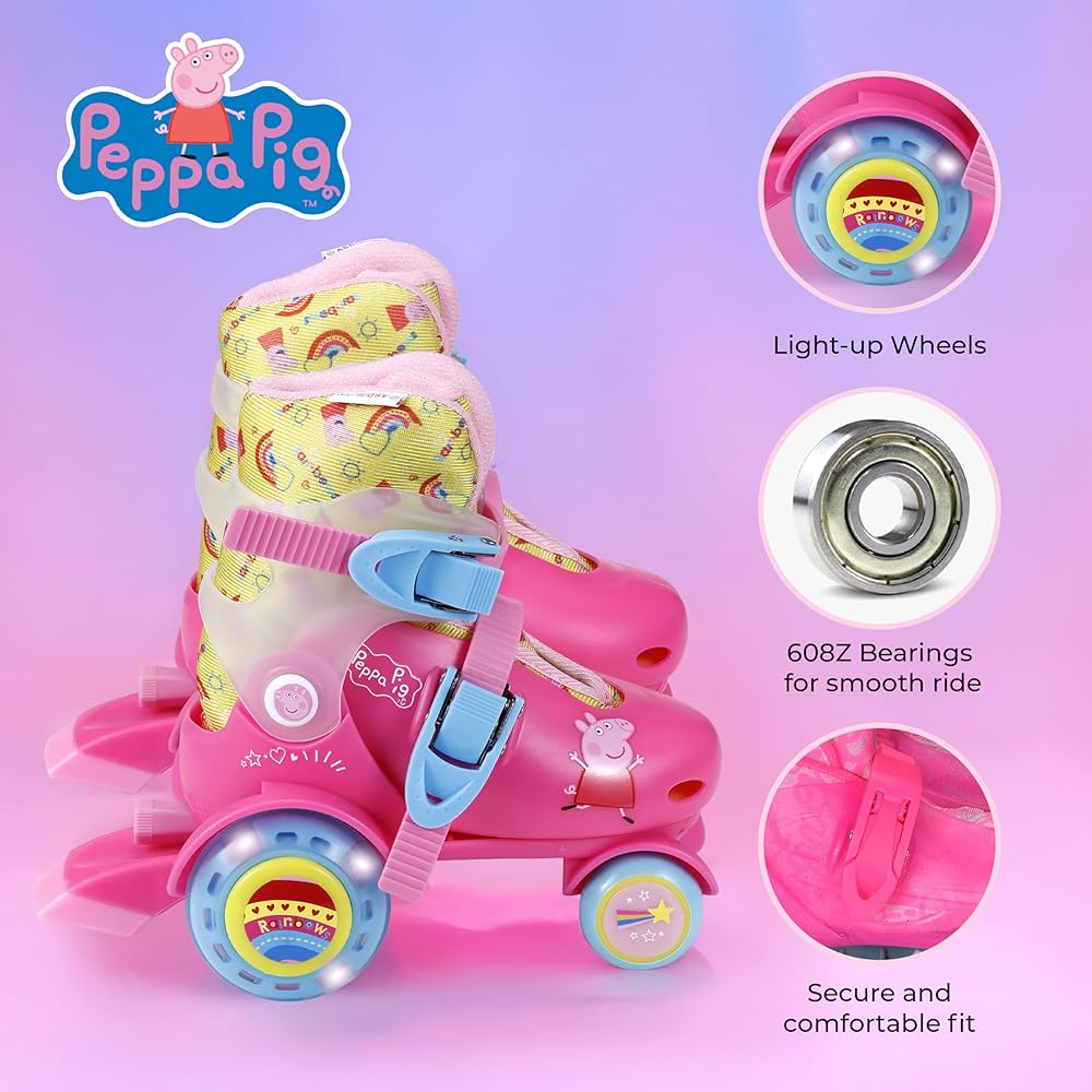 مقاس قابل للتعديل للاستخدام الممتد والملاءمة المثالية: مع القدرة على استيعاب مقاسات الأحذية من 9 إلى 12، ستظل هذه الزلاجات الرفيق المفضل لطفلك في مغامراته الخارجية، مما يوفر استخدامًا ممتدًا ومتعة دائمة.
