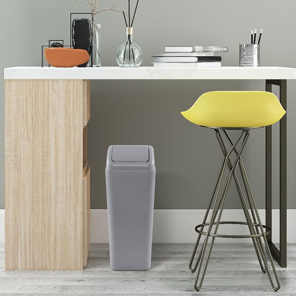 - يسمح التصميم النحيف بوضع سلة المهملات هذه في أي مساحة ضيقة