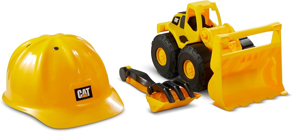 Take outdoor fun to the next level with the CAT Construction Fleet Sand Set! This set gives you all the tools you need to tackle any construction job, including a push-powered 10” vehicle along with a hard hat, shovel, and rake. Safety comes first on the job site so proudly wear your CAT hard hat when you're controlling the action by moving and posing the articulated vehicle buckets and booms just like the real thing. Use the hand tools separately or snap them together to help excavate the job site. Real CAT machines are known for their high quality, these toys are no different, built to withstand the elements and perfect for outdoor play. Appropriate for ages 3 years and up. Collect them all! WARNING: CHOKING HAZARD -- Small parts. Not for children under 3 yrs.