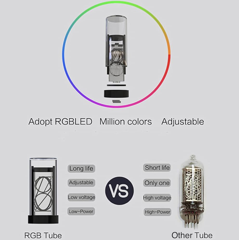 • 【Thousands of Colors Are Adjustable】The clock uses RGB LED tubes, which can be manually adjusted in thousands of colors and seven display modes to change colors suitable for any scene and mood at any time.