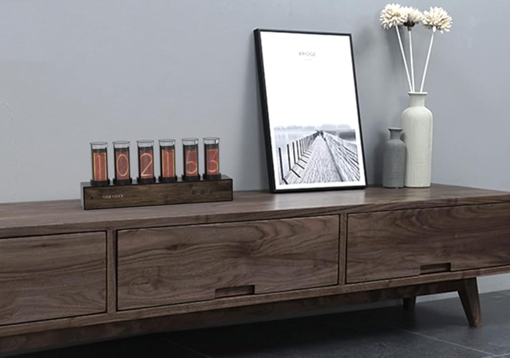 ساعة رقمية على شكل أنبوب Nixie لمحاكاة إبداعية، تقويم إلكتروني 6 بت LCD تصميم مغناطيسي بألوان متغيرة، ديكور مكتب عتيق عتيق، أفضل هدية لصديقك، بني