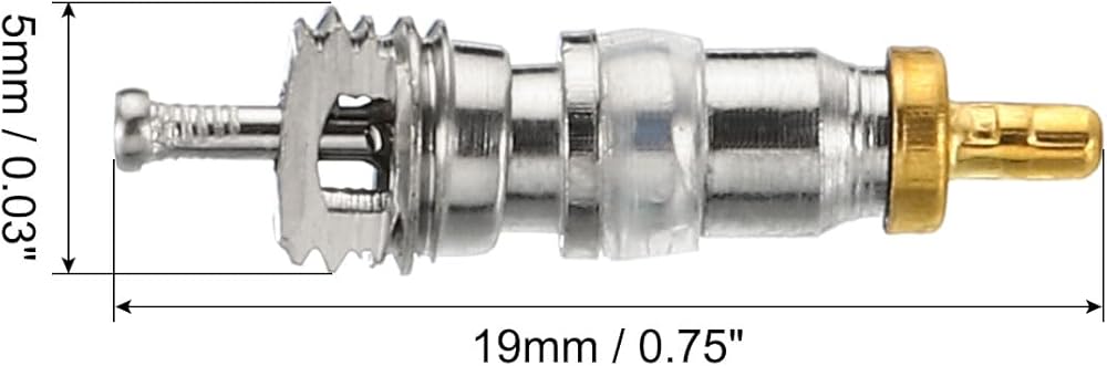 • Color: Brass Tone; Material: Brass, Silicone; Size: 19 x 5mm / 0.75 x 0.03 inch(L*OD); Packing List: 50 x Refrigeration Valve Core