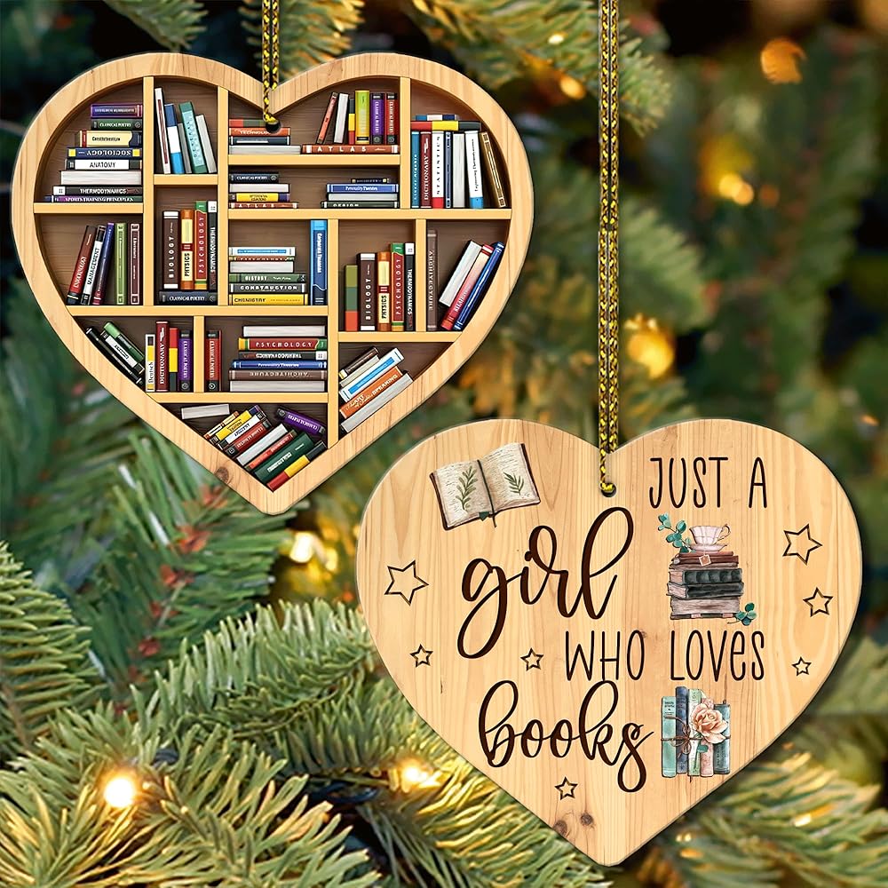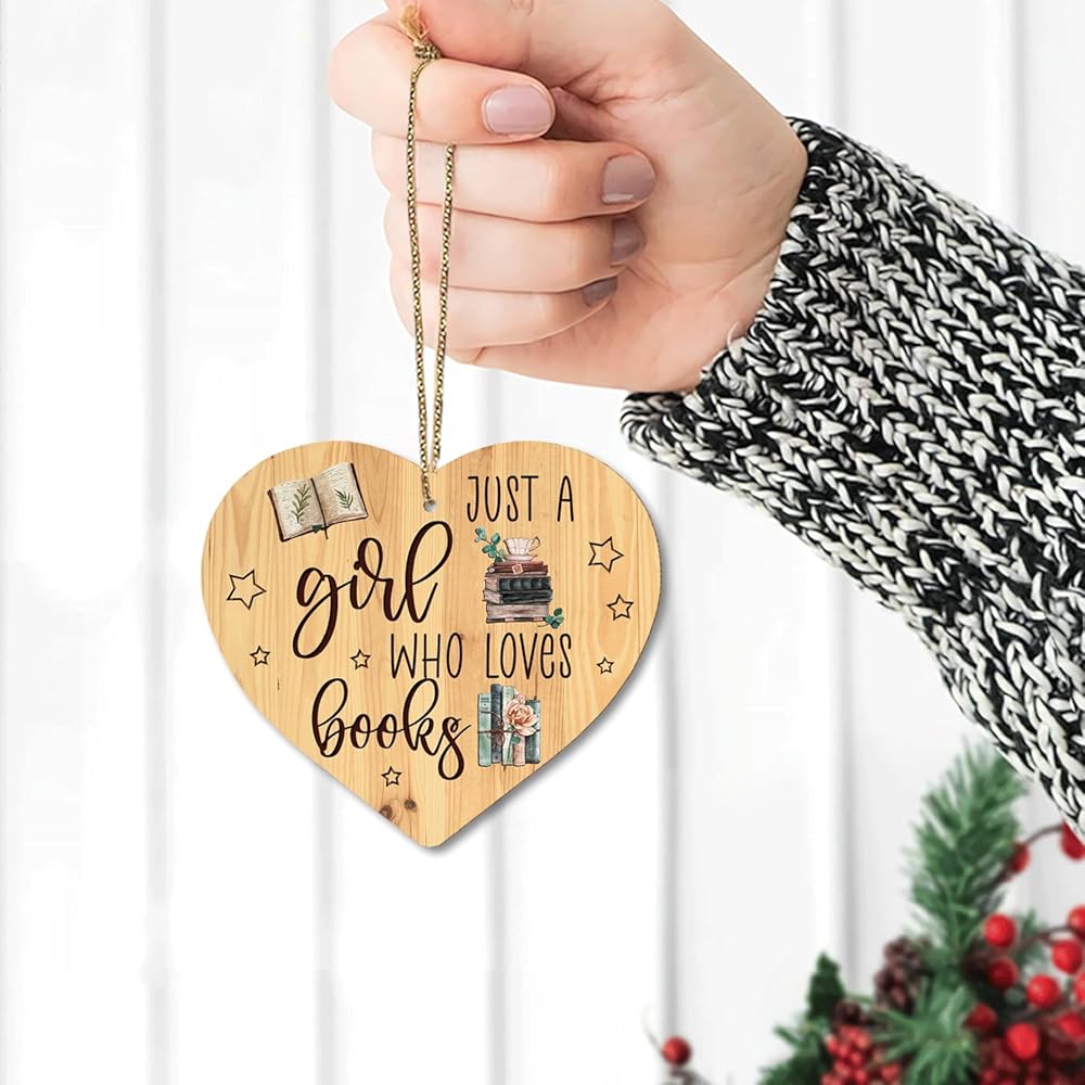 هدايا كتاب مطبوعة مسطحة ثنائية الأبعاد من HYTURTLE لمحبي الكتب - زخرفة شجرة زخرفة خشبية لعيد الميلاد - هدايا مكتبة لمحبي الكتب - هدايا كتب للفتيات والنساء - زخرفة خشبية تذكار على الوجهين