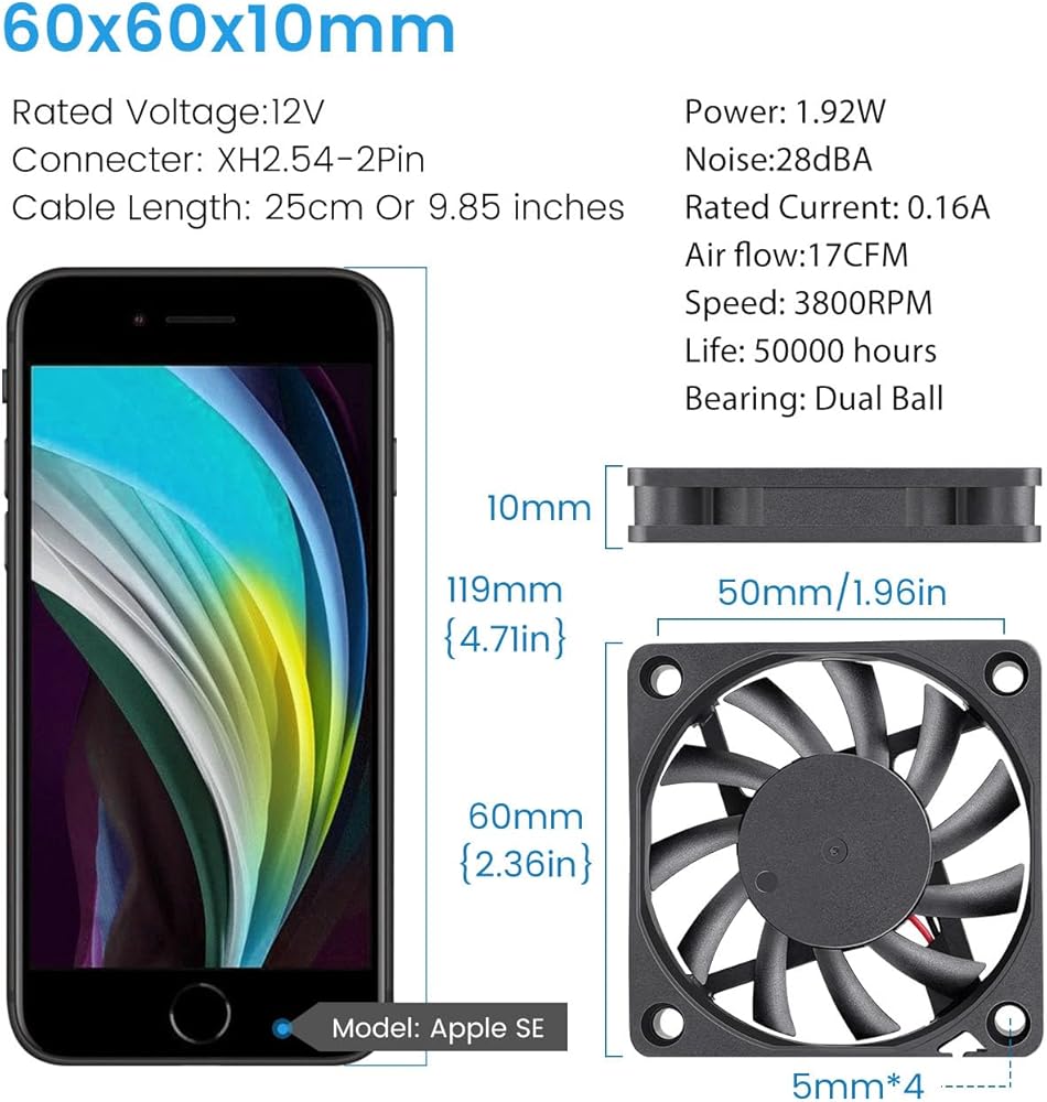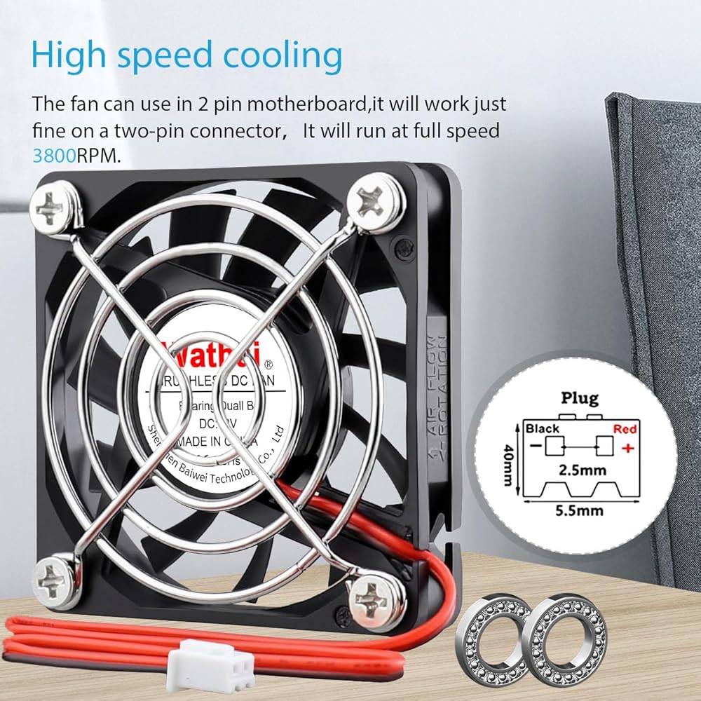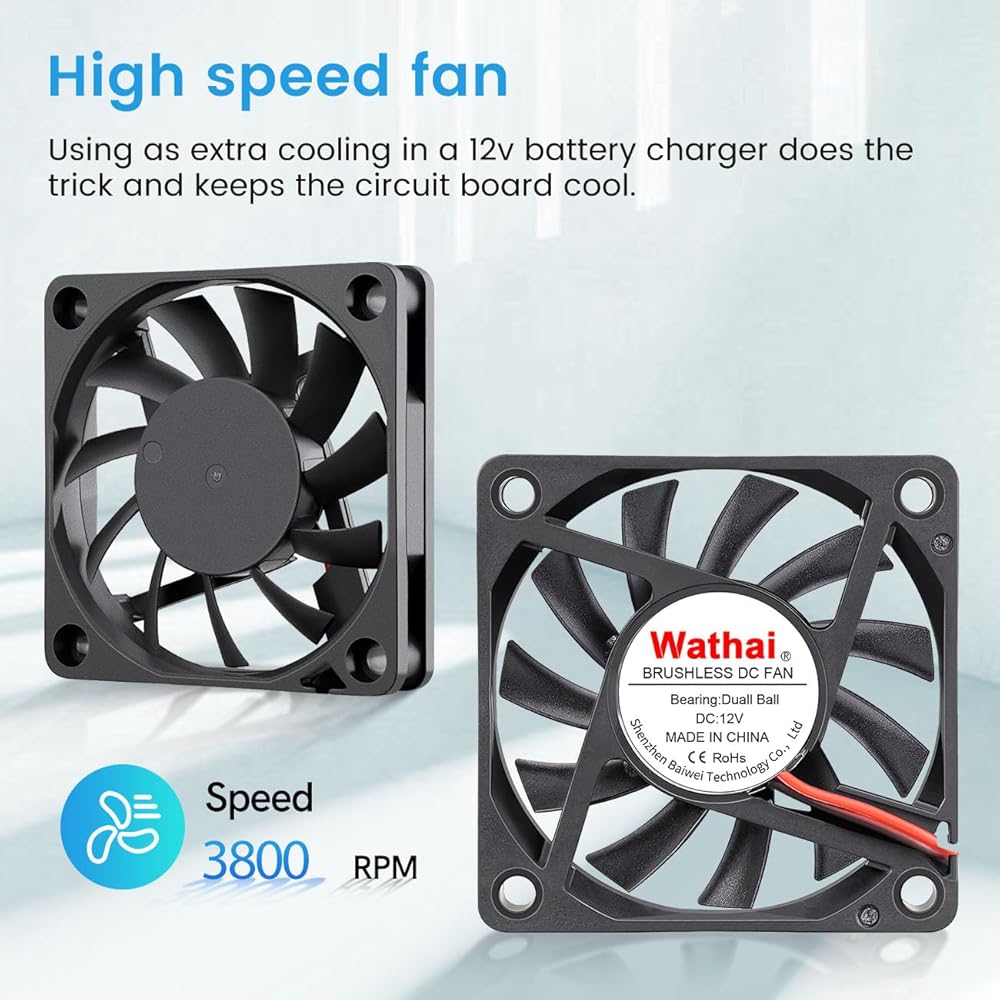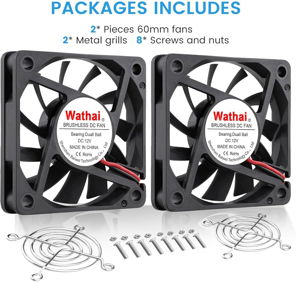 【سهلة التركيب】قم بتثبيت المروحة 60 مم 12 فولت بسهولة في أجهزة مختلفة. الحجم الصغير يضمن التوافق. استمتع بتبريد DIY خالي من المتاعب مع Wathai.