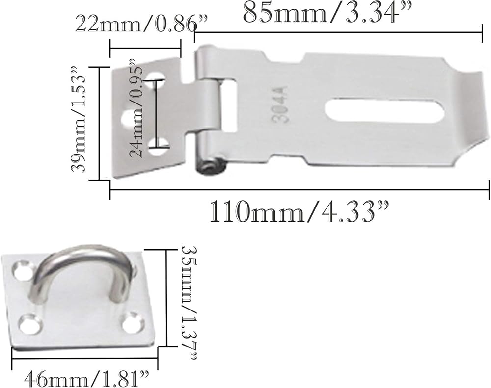 2 قطعة قفل سميك 304 مشبك من الفولاذ المقاوم للصدأ يمكن إضافة قفل خزانة عتيقة 3 بوصة مشبك باب فضي
