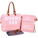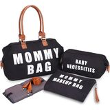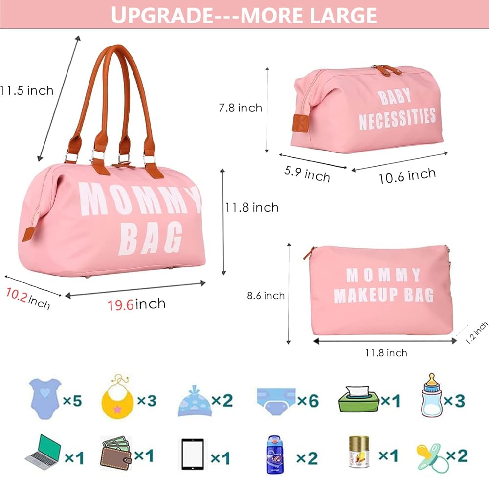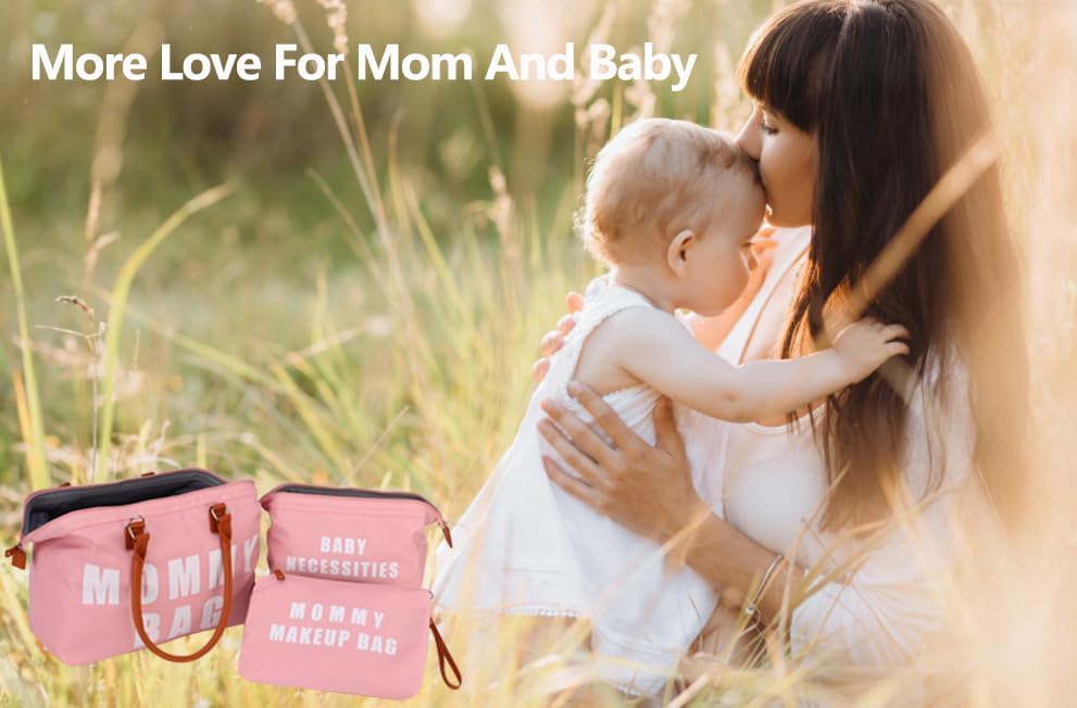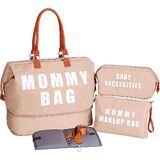 【مجموعة كاملة مكونة من 3 قطع بتصميم حقيبة حفاضات الأم متعددة الأغراض】تتضمن: 1*حقيبة الأم الكبيرة تحتوي على جيب واحد معزول للزجاجات لزجاجة الحليب، وجيب مبلل بسحاب للملابس المبللة أو المناشف، وجيبين منزلقين لحفاضات الأطفال حديثي الولادة والمناشف والمحفظة وما إلى ذلك. 1* حقيبة مكياج للأم للأم، 1* حقيبة طفل للطفل