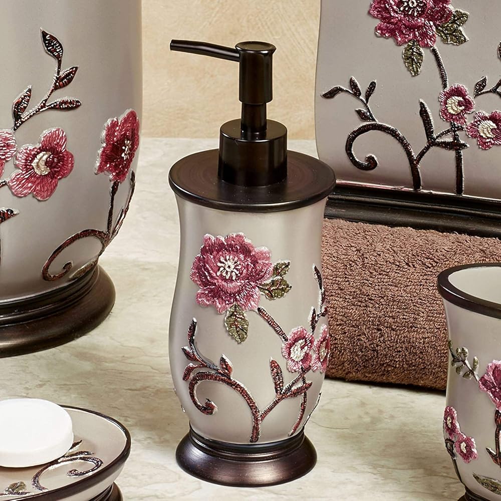 موزع صابون الحمام الشهير/مضخة اللوشن، مجموعة لاريسا، تصميم وردي، بني