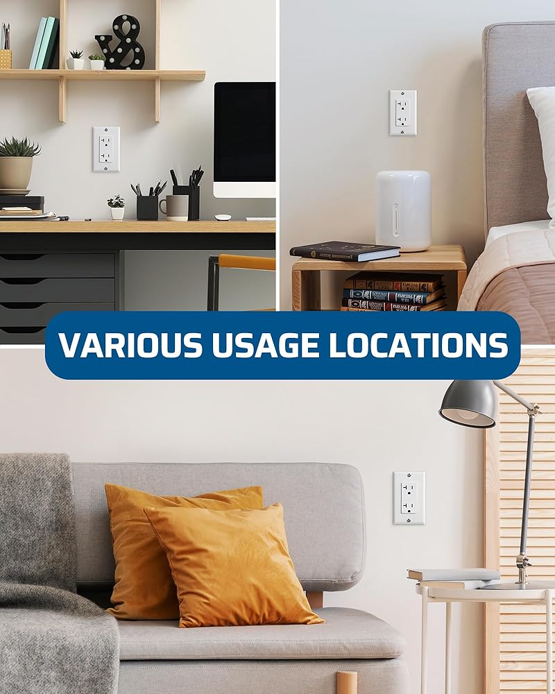 [سلامة معززة وتصميم مضغوط] تضمن شهادة UL سلامة المنتج؛ تم تصميم الحجم النظيف والمدمج ليناسب بسلاسة صناديق المنافذ القياسية، وهو أنيق وموفر للمساحة
