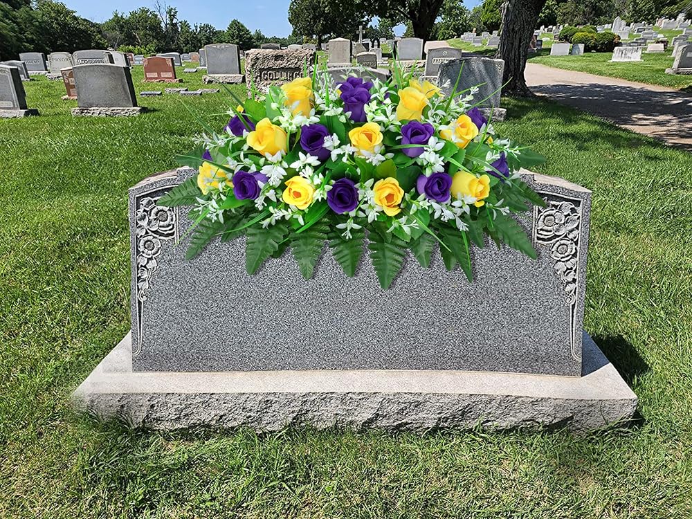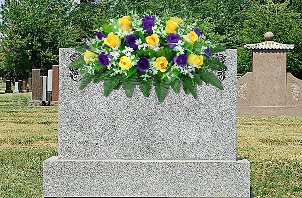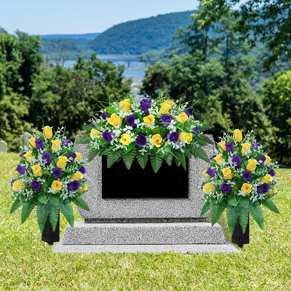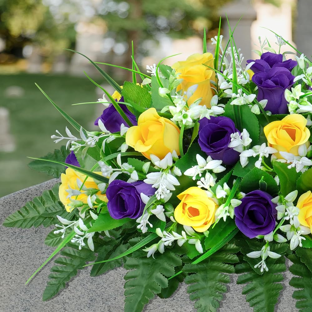 Long-Lasting Beauty: Enjoy these silk flowers' lasting beauty without needing sunlight, watering, pruning, or other maintenance.Patented Flower Holder: The patented flower holder design allows for quick adjustment of flower shapes and secures the bouquet to the tombstone, even in windy or rainy weather.