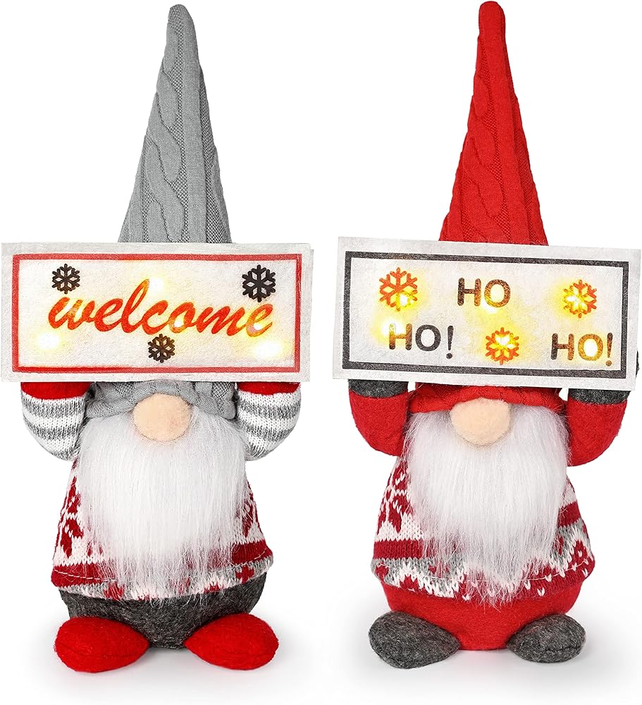 mocoosy 2 حزمة مضاءة عيد الميلاد جنوم أفخم الزينة، اليدوية السويدية Tomte جنوم الحلي مع LED، تضيء الاسكندنافية سانتا قزم الدمى الشمال تمثال لقضاء عطلة عيد الميلاد صينية طاولة الديكور
