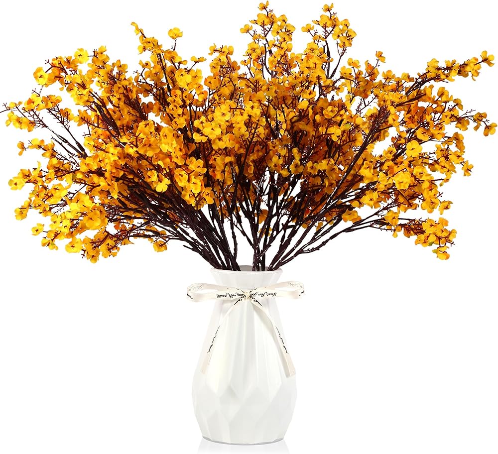 🌷BABYS BREATH FLOWERS: You will receive 12 pieces orange artificial baby breath bouquet, which means everlasting love. The quantity is sufficient that can meet your holiday decorative needs, and you can also share them with friends, neighbors or relatives. (Vase Not Included)