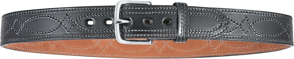 The B12 Fancy stitched belt features cross over stitching throughout the length of the belt. It is made of premium, vegetable tanned full grain cowhide, oil tanned and hand rubbed to a lustrous finish. A narrower version of the original Fancy stitched belt. Natural oil finish on one side, suede on the other; suitable for reversible wear. Plain finish, tan; 1.5 inch 32" - 46" (81 cm-11 CM). Bianchi part # 12876.