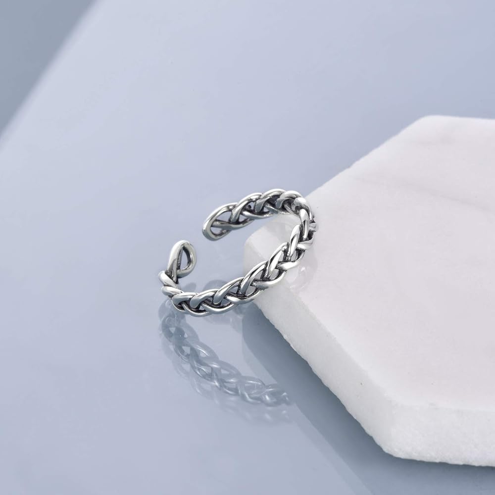 💕 【إلهام التصميم】: تم تصميم الخاتم الفضي بأسلوب سلتيك مجدول. يُعرف الخاتم السلتي بأنه رمز للحب والخلود منذ آلاف السنين. العقد السلتية عبارة عن حلقات كاملة لا نهاية لها دون أي بداية أو نهاية؛ هذا النمط الذي لا ينتهي يسمى العقد النقية.