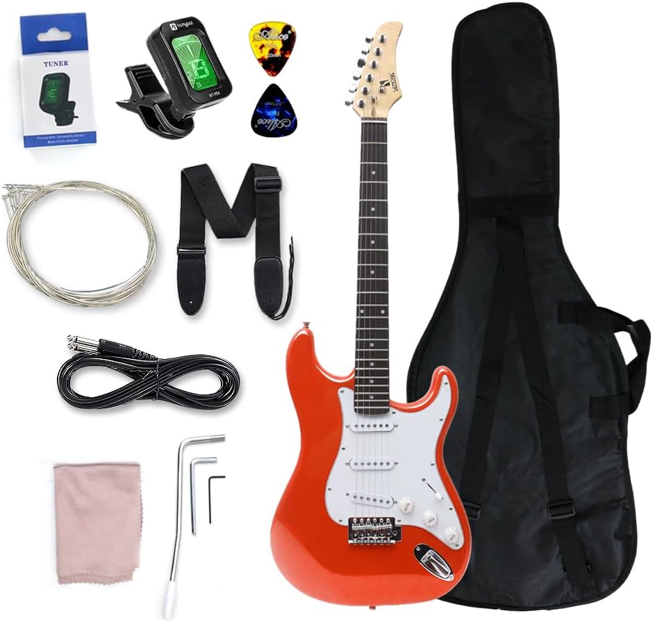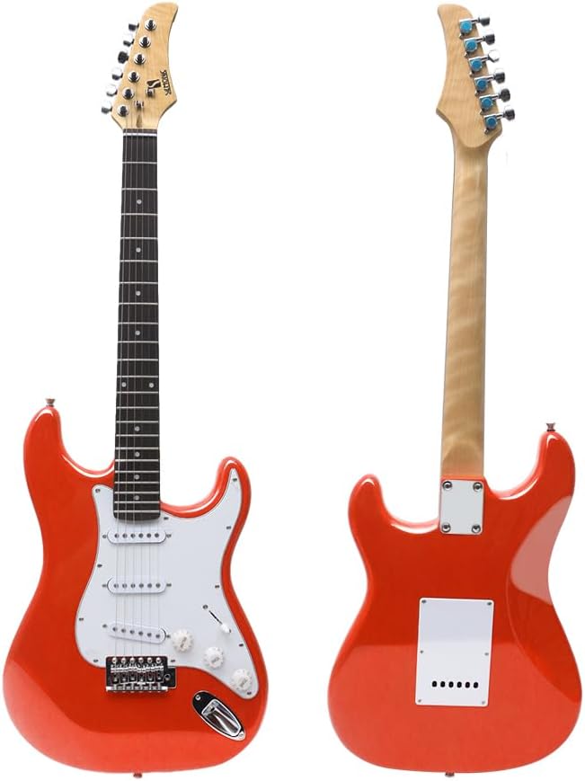 صوت رائع: ينتج جيتار WUQIMUSC الكهربائي صوتًا رائعًا مناسبًا لتشغيل مجموعة واسعة من أنواع الموسيقى. توفر الالتقاطات أحادية الملف S-S-S نغمة أكثر وضوحًا ومتوازنة مع استجابة تردد أعلى وتأثيرات أفضل على التشويه.