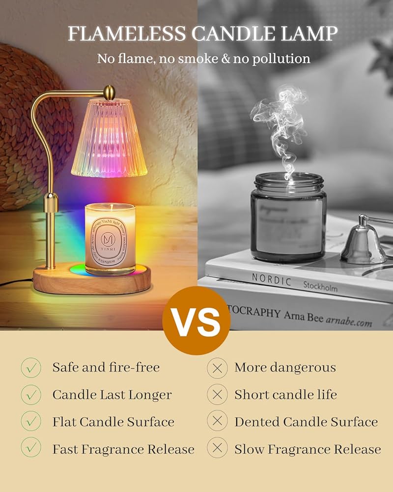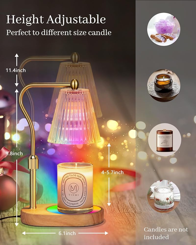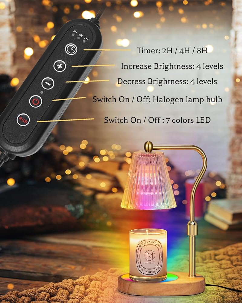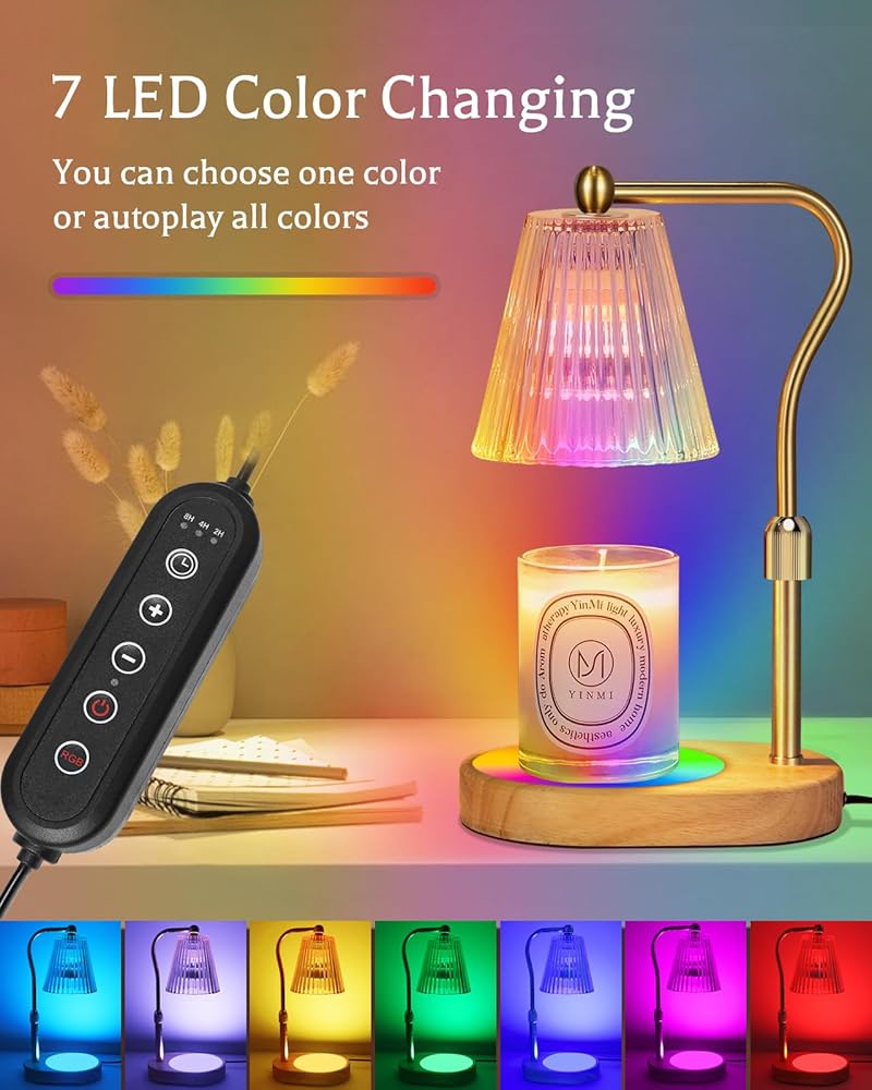 مصباح تسخين الشموع مع 8 ألوان LED متغيرة، سخان شمعة مع مؤقت خافت، مصباح شمعة كهربائي مع ارتفاع قابل للتعديل لديكور المنزل لشموع الجرة المعطرة