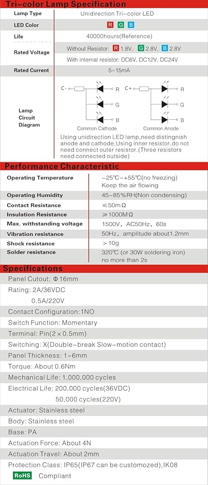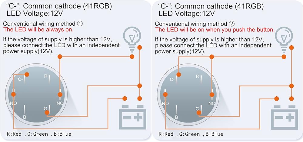 (Pack of 2) The LED illumination(12V) of this product can be switched in three colors(Red,Green,Blue)through wiring diffrent terminals; Four pins: one for each color and a common cathode (41RGB)