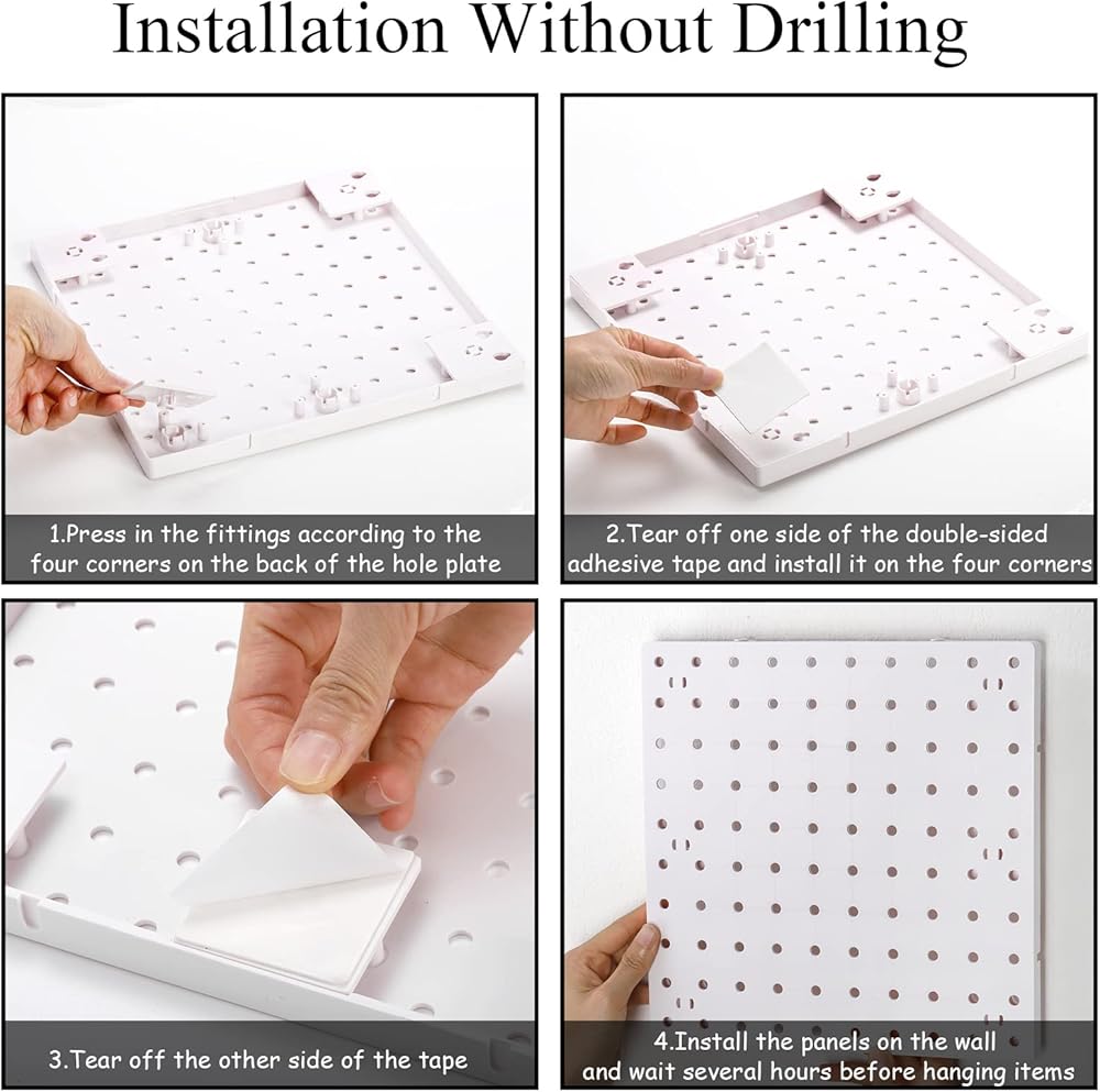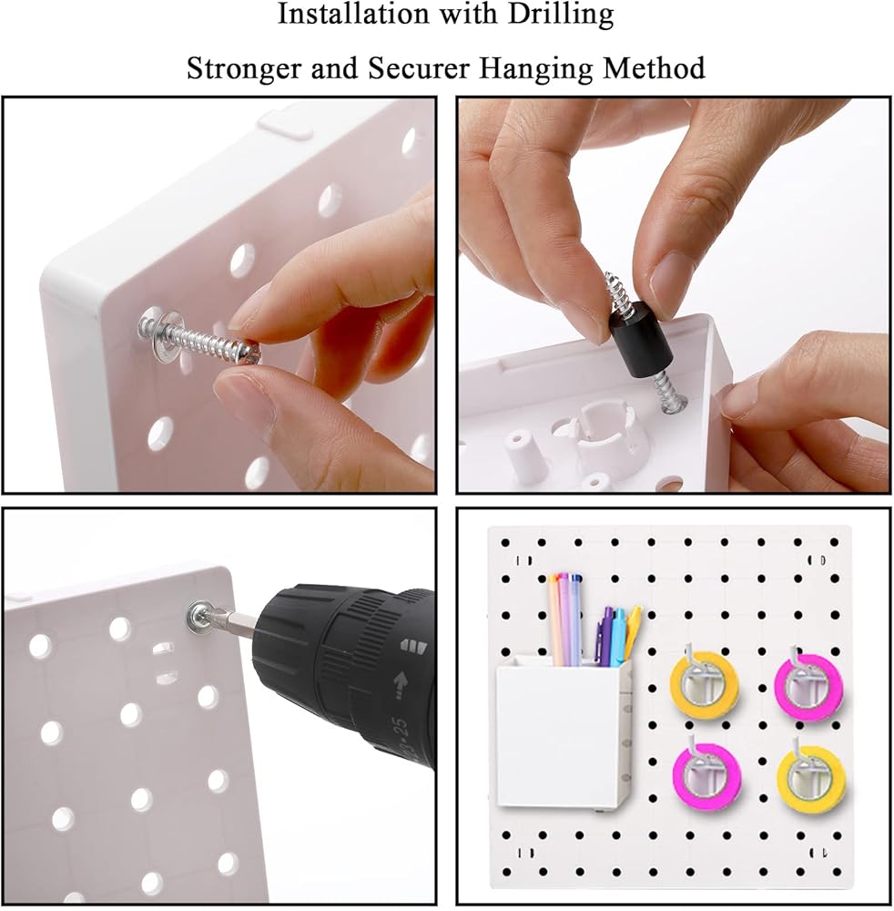 Complete Set for You: Package contains 4 pegboard panels, and additional 16 mounting brackets, 16 double-sided adhesive tape, 20 mounting kits (including 20 screws, 20 shims, 20 washers, 20 anchors), sufficient quantity and a complete set of accessories helps your installation process easily and quickly.