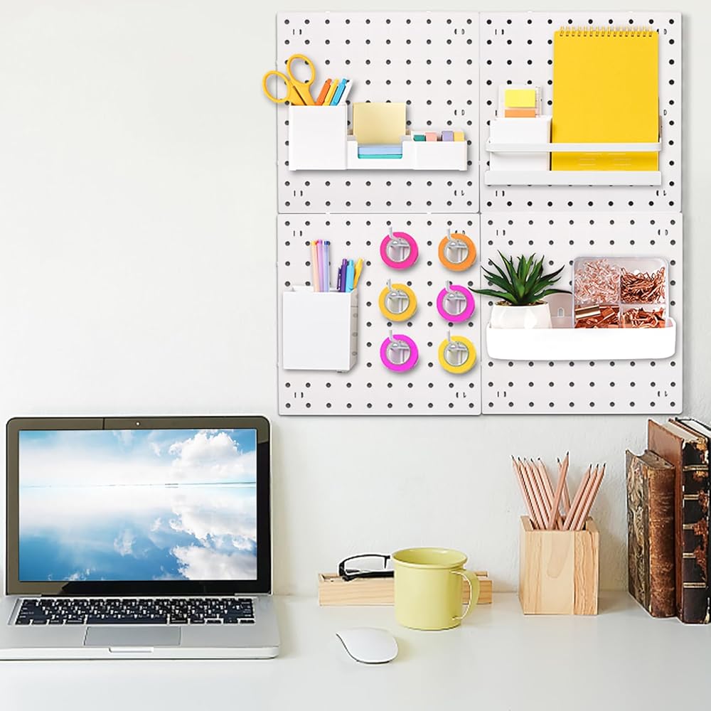 Space-saving: The pegboard wall organizer makes full use of the empty places up above the table and create additional wall space to store and organize small items or clutters. It is the best space-saving way to organize a wide range of tools, small parts, keys, handicrafts, office supplies, mini plants and other light items. Greatly helps to keep your accessories neatly organized and easily accessible.