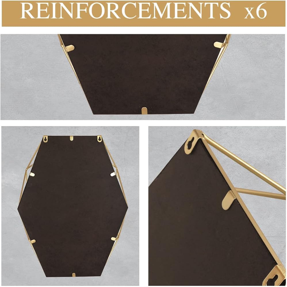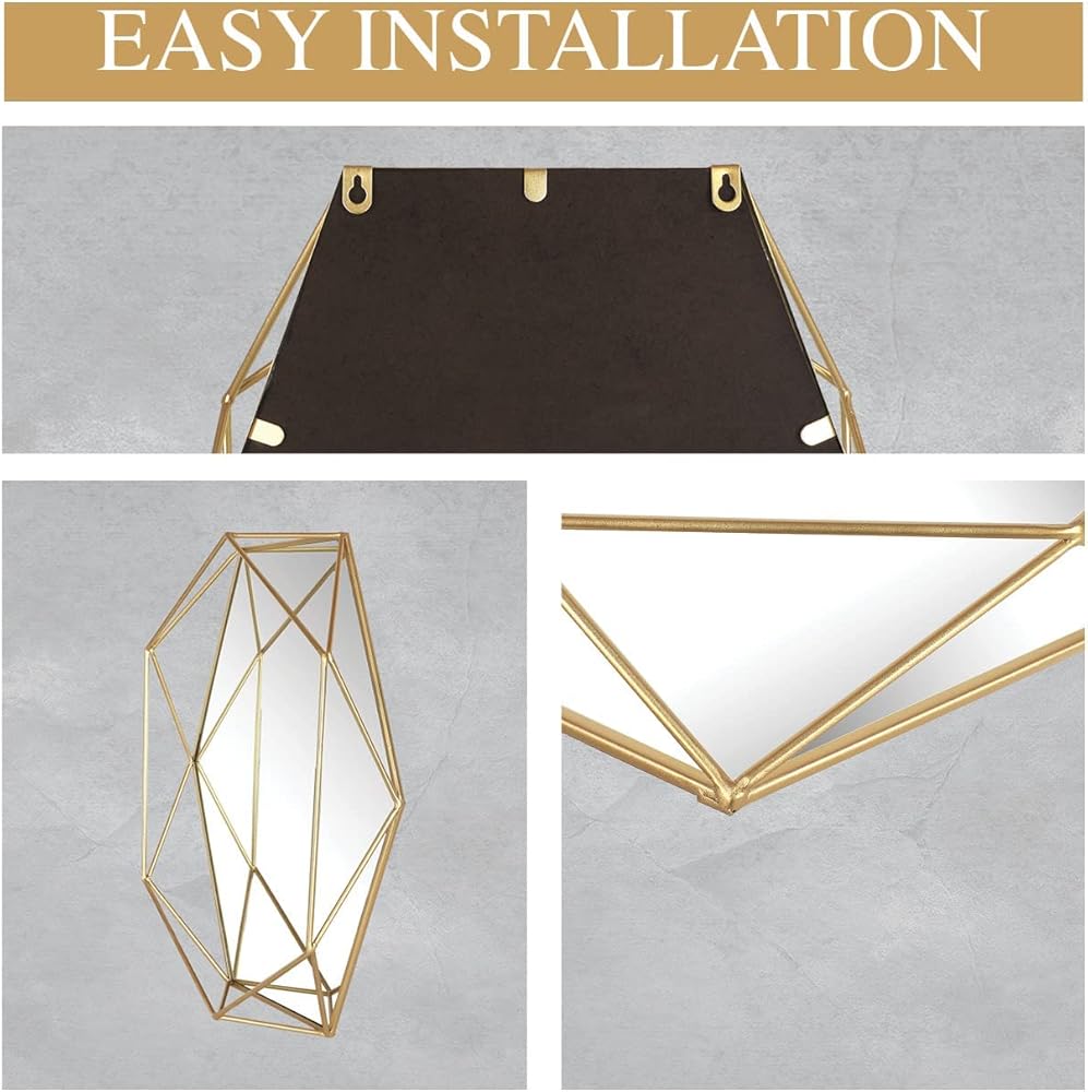 ✔EXCELLENT PERFORMANCE: Since our mirrors are made from high-quality glass, this geometric hexagon gold mirror offers a high HD clarity glass which visually enables to expand your room spaces. It instantly doubles the light and visual depth in a small room so that it makes the space appear larger. This decorative gold mirror also presents a clear visual image without distortion due to its high reflectivity.
