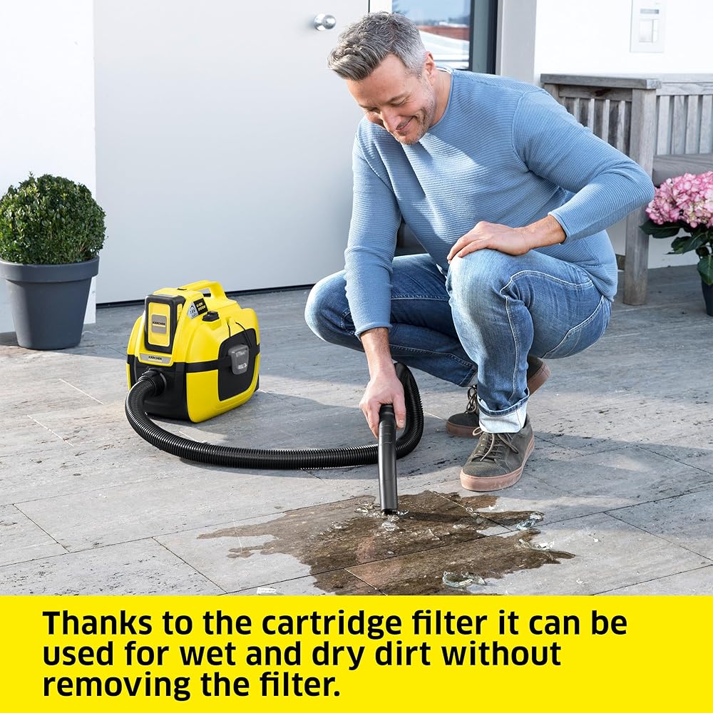 Wet and dry dirt: The Kärcher WD 2-18 vacuum cleaner cleans both wet and dry dirt without changing the filter