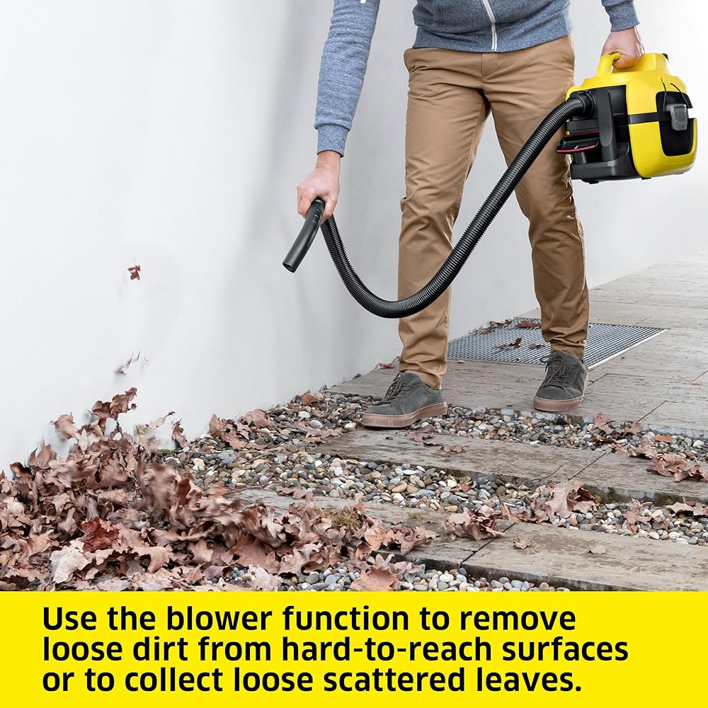 Car Cleaning Companion: Thanks to the portable, battery-powered design the shop vac is ideal for car vacuuming or cleaning tasks with no power plug around. Blowing function: Use the blower function to remove loose dirt from hard-to-reach surfaces or to collect loose scattered leaves