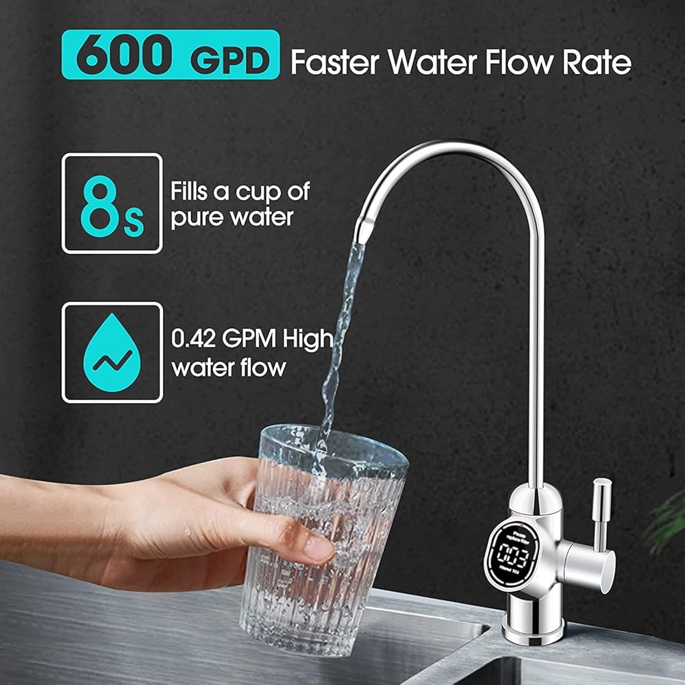 نظام التناضح العكسي الخالي من الخزانات تحت الحوض ، نظام تصفية المياه 600GPD RO ، 1.5: 1 نقي للتصريف ، شاشة TDS ، يقلل من TDS ، NSF/ANSI 58 ، مرشح RO تحت الحوض