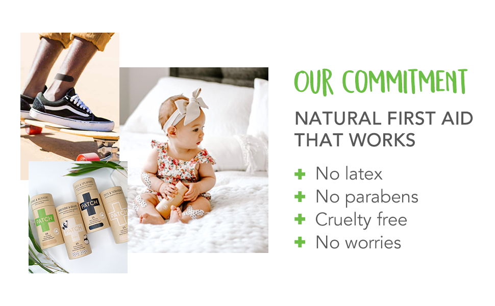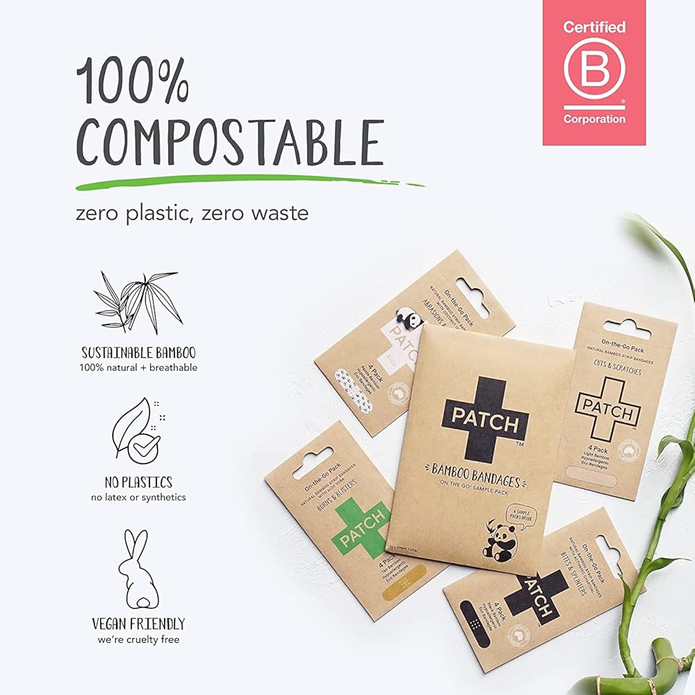 معتمدة من B-CORP، صديقة للبيئة وطبيعية: ضماداتنا المعدنية، المصنوعة من ألياف الخيزران المعتمدة بنسبة 100%، قابلة للتحلل البيولوجي بنسبة 100%، وطبيعية، ولا تسبب الحساسية، وخالية من زيت النخيل، وصديقة للنباتيين، ولم يتم الإساءة إلى الحيوانات لتصنيعها، ولم يتم الإساءة إلى الحيوانات في تصنيعها، ولم يتم الإساءة إلى الحيوانات في تصنيعها، ولم يتم إساءة معاملة أي حيوان أثناء إنتاجها. - خالية من البلاستيك والسيليكون واللاتكس والبارابين - مما يجعل ضماداتنا مثالية للبشرة الحساسة والبيئة. عبواتنا مصنوعة من الورق المقوى المعاد تدويره ومطبوعة باستخدام الأصباغ الطبيعية فقط... ونعم، 100% من عبواتنا قابلة للتحلل بنسبة 100%!