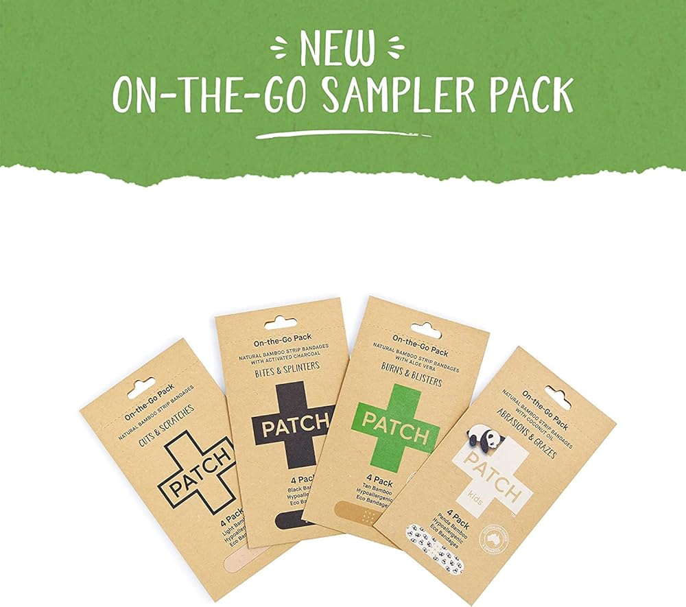 لقد انتهى الانتظار: تتيح لك حزمة On The Go Sampler Pack الجديدة تجربة جميع ضمادات الخيزران اللاصقة المقاومة للحساسية والصديقة للبيئة الأربعة أولاً قبل شراء الأنابيب الأكبر لدينا. تتكون من 16 ضمادة إجمالية، سوف تحصل على 4 شرائط ضمادة لكل نوع من الضمادات (4 × الفحم المنشط، 4 × زيت جوز الهند، 4 × خلاصة الصبار، 4 × طبيعي). مصنوعة من مكونات طبيعية ونسيج الخيزران فائق النعومة وجيد التهوية، جميع الضمادات لدينا مصممة لتصحيح حالتك، حتى تتمكن من الاستمرار في مغامراتك!