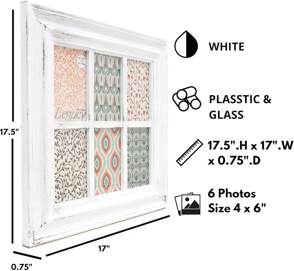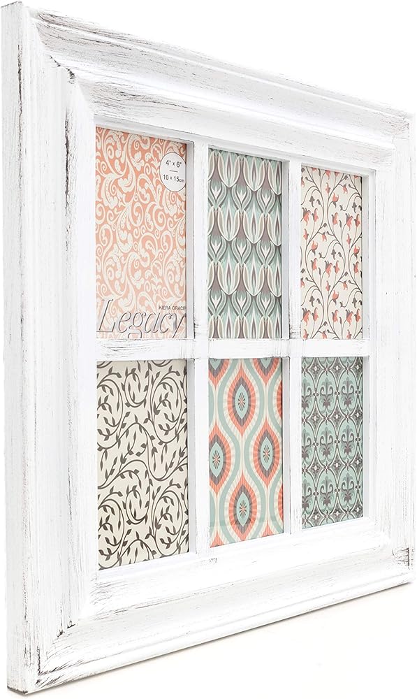 Kiera Grace Alice Collage Frame, Durable Picture Frame with 12 Frames, Holds Twelve 4" x 6" Photos, Wall Mount Photo Frame, Distressed Rustic Country Window Design, 18" x 30", White