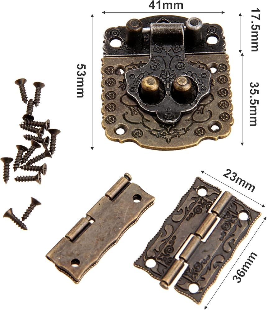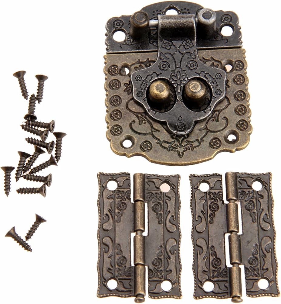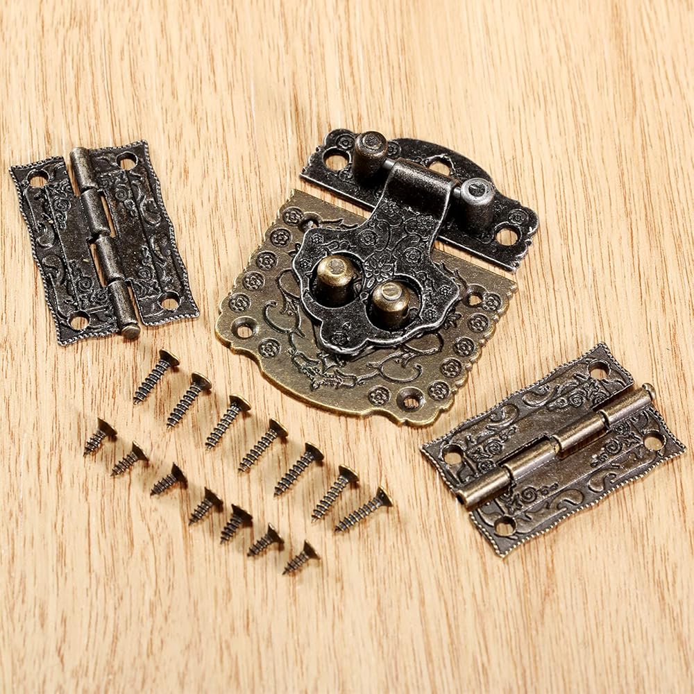 dophee 1 قطعة صندوق النقش الزخرفية غلق بمشبك قفل مزلاج و 2 قطعة مفصلات صغيرة مع مسامير تركيب لصندوق المجوهرات صندوق خشبي صغير صندوق ألعاب صندوق الصدر مجموعة أدوات بيت الدمية