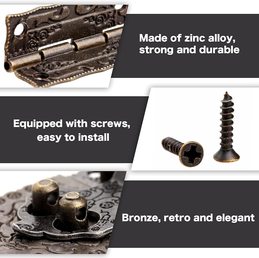 • 📍[RETRO STYLE] These antique bronze jewelry box latches and hinges combine old fashion and good looking into our original ideal, adding a retro flavor to your objects and bringing you an ancient and distinctive experience.