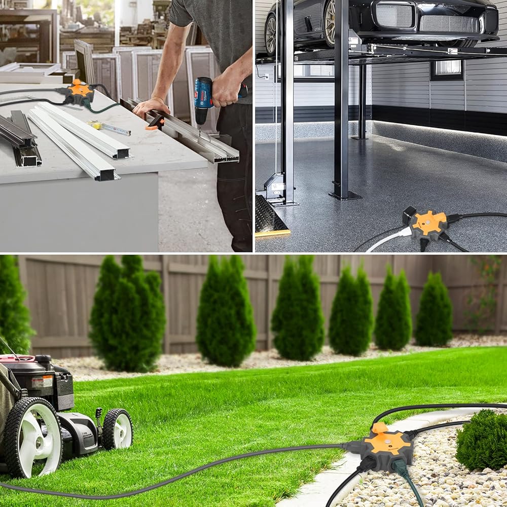 【Wide application】Due to it's light weight and compact design, very easy to bring along to a job site or keep handy in the garage, a convenient hook makes your extension cord link with it tightly