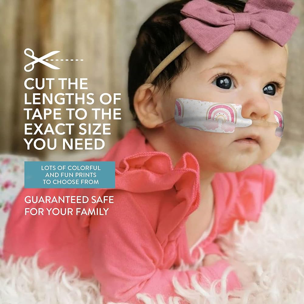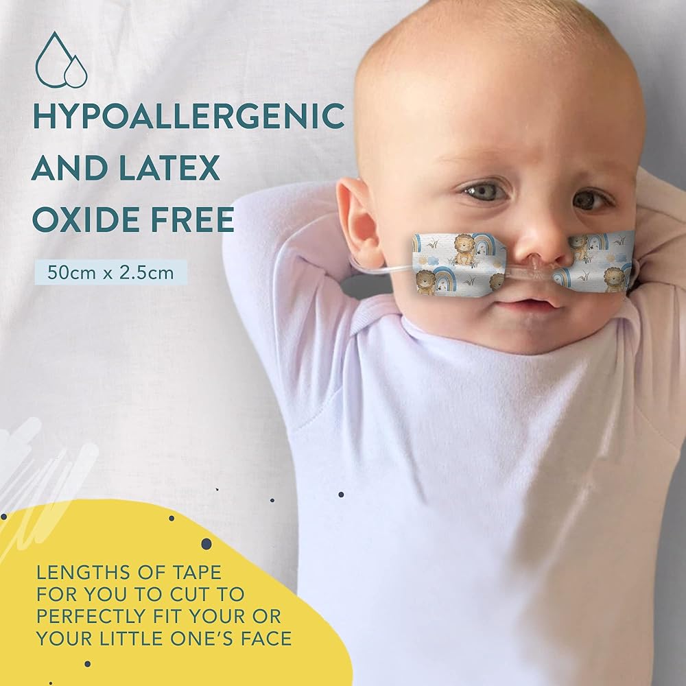 Adhesive tape to secure and add some color for a Nasogastric or oxygen tube. Manufactured from a hypoallergenic quality 3M medical grade tape, that is suitable for sensitive skin. Length to perfectly fit the contour of yours or your little ones face. Package includes: 3 x Precut lengths 500mm x 25mm. Choose from our designs or make your own. Hypoallergenic and latex oxide free Manufactured on 3m medical grade tape. If you have any special requests please feel free to contact us. Some images may vary slightly. Patent Protected Design 201914705