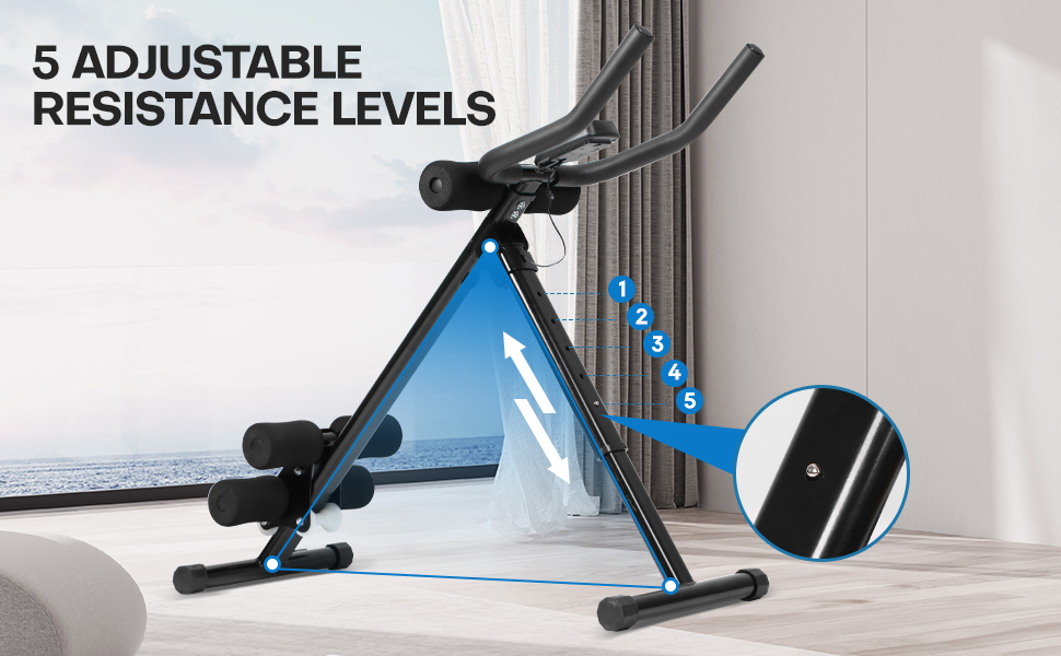 5 Gears Adjustable level: Our ab workout machine features 5 adjustable resistance levels, allowing you to adjust the height to meet different training intensities. It's perfect for fitness beginners to shape waist. The more inclined the ab workout is, the more challenging abdominal exercise you will get
