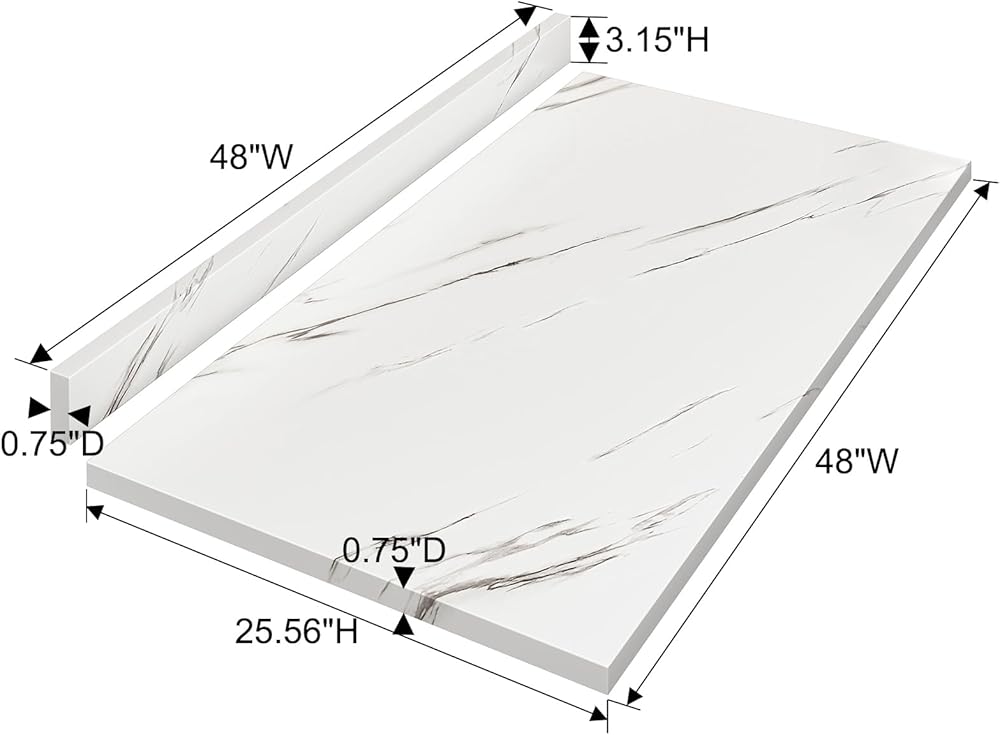 سطح طاولة صفح من LOVMOR، سطح طاولة مجفف للغسالة، سطح خشبي للاستخدام بنفسك، سطح الطاولة، 48 بوصة طول × 25.56 بوصة عرض × 0.75 بوصة ارتفاع لمكتب المكتب وطاولة المطبخ (نسيج رخامي)