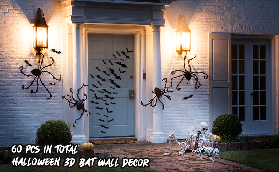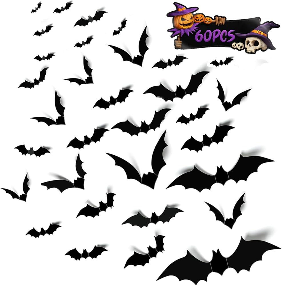 ديكورات الهالوين ملصقات الخفافيش الداخلية ديكور 60 قطعة ملصقات حائط خفاش ثلاثية الأبعاد واقعية مخيفة لتزيين حفلات الهالوين ديكور منزلي للهالوين