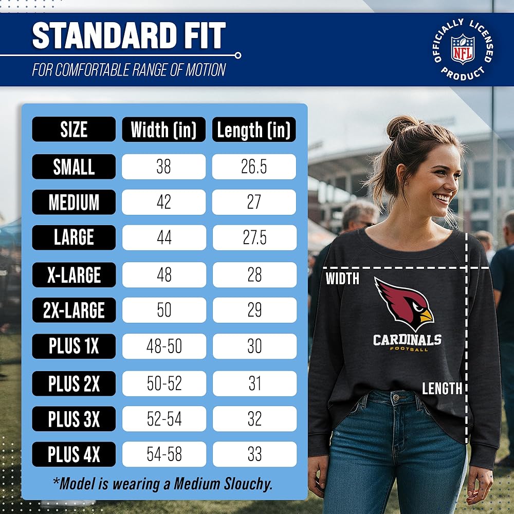 Score with Team Fan Apparel, the ultimate destination for officially licensed NFL apparel for men and women. We use only the highest-quality screen printing techniques to bring you the most comfortable, durable, and stylish clothing possible. Go ahead and show your team pride at the big game or any time! This premium womens slouchy charcoal crewneck comes in small, medium, large, XL, and XXL. So needless to say, it fits fans of all types! Maybe you aren't a fan but you know someone who is? Don't worry! This high-quality crewneck is soft, lightweight, breathable, and a GREAT gift for any birthday, anniversary, Mother's day, Valentine's day, or Christmas gift! So, if you want to stand out as the #1 female fan at the next big game or watch party, you're going to want to be wearing one of these Women's Big Logo pullover crewnecks.