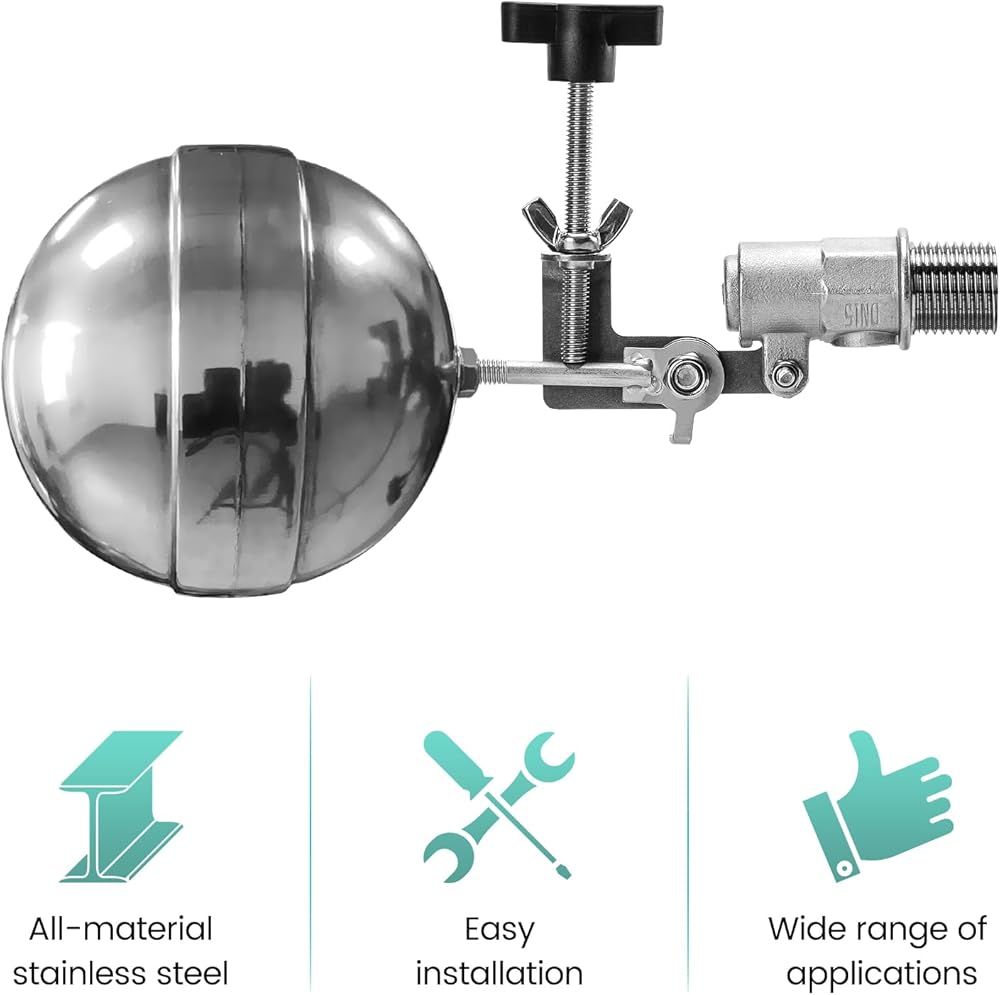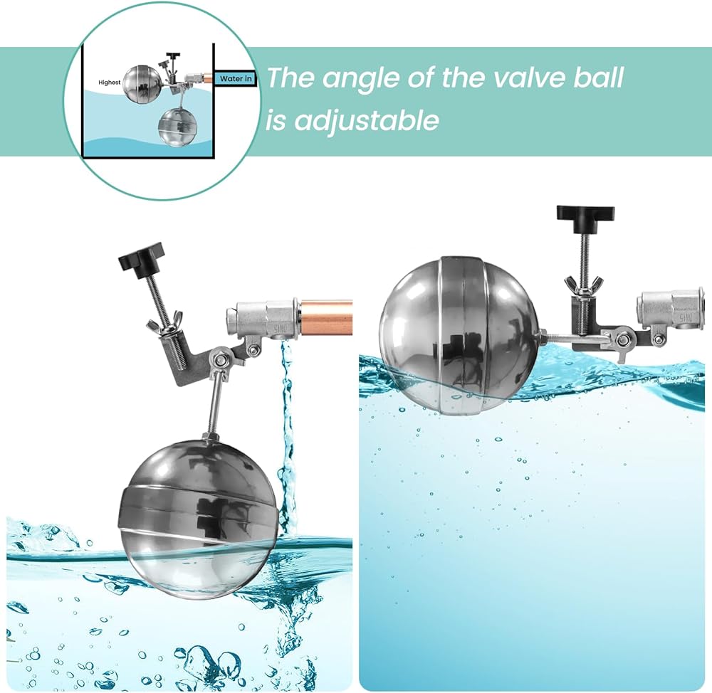 تركيب سهل: يتطلب صمام العوامة الأوتوماتيكي القابل للتعديل خطوتين فقط للتركيب. ببساطة قم بضبطه على مستوى الماء المرغوب فيه، ثم قم بربطه بأمان بلفة. إنه سهل التشغيل ومباشر، لذلك لا داعي للقلق بشأن أي مشكلات تتعلق بالمهارات اليدوية