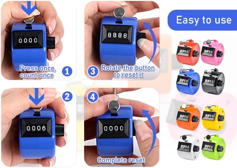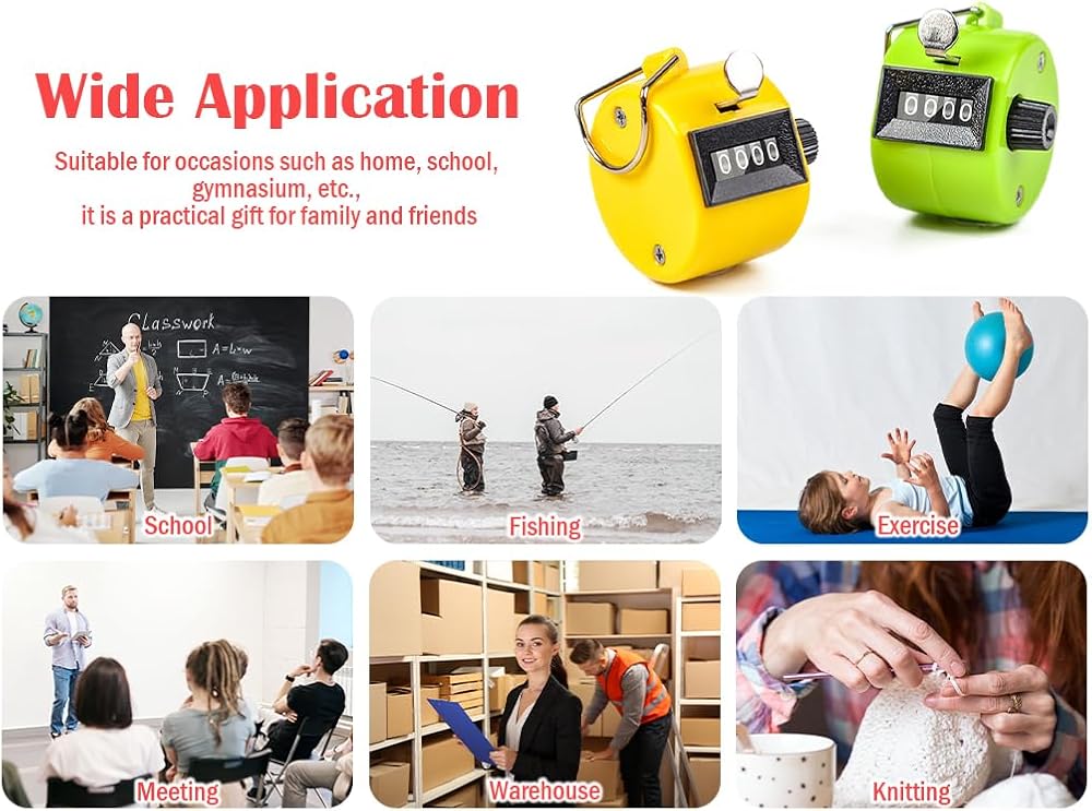 💯 The hand tally counters can be used in all kinds of situations that need counting, it can use for school, warehouse and fit center club, ect.