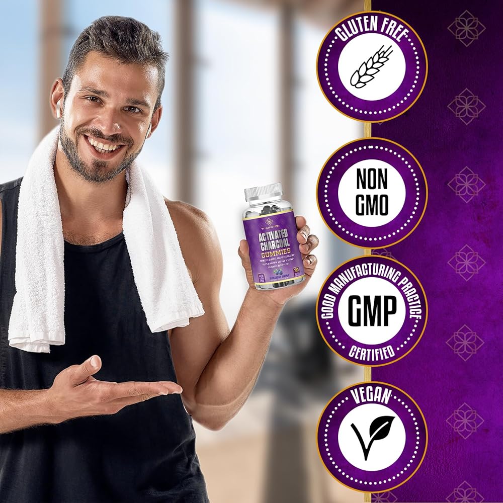 Activated Charcoal Supplement - An appealing alternative to traditional activated charcoal powder, charcoal pills, and activated charcoal tablets. These delicious gummies are not only safe for kids but also suitable for adults. Infused with the delightful flavor of natural açaí, our gummies are crafted using natural ingredients, and they are free from artificial colors, flavors, and preservatives. Activated Charcoal gummies provide a wholesome choice to incorporate into your routine. Charcoal Gummies for Stomach - Activated Charcoal serves as nature's powerful absorbent, effectively capturing impurities and toxins that can cause indigestion or gas, while also assisting in maintaining oral health by binding to plaque and compounds that contribute to teeth staining and bad breath. Activated Charcoal For Kids - Kid-friendly and delicious alternative to conventional activated charcoal capsules or powders. With a delightful natural acai flavor, our activated charcoal gummies not only taste great but are also safe for children 3 years of age or older. We prioritize using only natural ingredients, ensuring our gummies are free from artificial colors, flavors, and preservatives. Pure and Honest - Our pectin-based activated charcoal gummies are sourced from burnt coconut shells, making them vegan, non-GMO, gluten-free, and gelatin-free. Enjoy a clean and wholesome choice with our unique formulation!