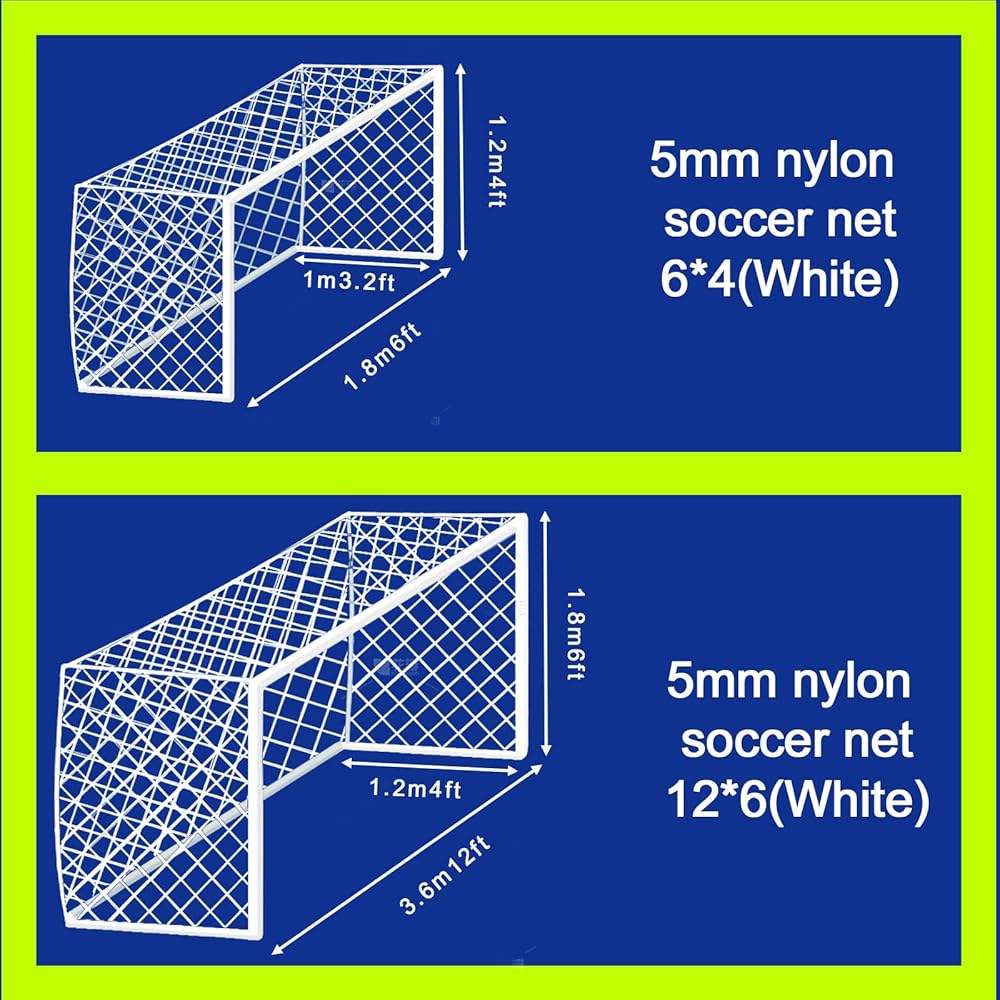 • Thicker soccer net: made of high quality thick 5mm nylon rope, high quality raw materials woven out of the soccer net color is brighter, not easy to break, withstand the outdoor sun and wind. And the rope is tough enough, with a perfect knot style, effectively prevent the soccer net from unraveling under heavy use.