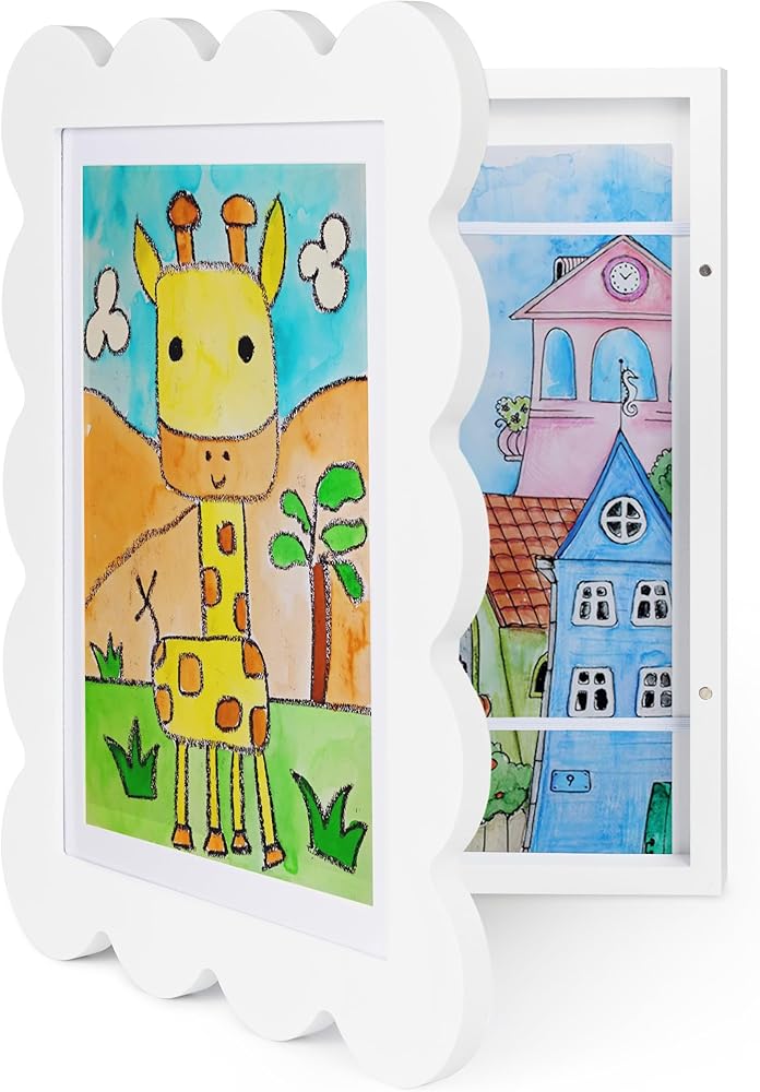 تصميم رائع للتحف الصغيرة: اكتشف الإطار الفني اللطيف للأطفال بتصميم صدفي أصلي. يعرض الأعمال الفنية الثمينة للطفل ويخزن جميع القطع الفنية بشكل صحيح. قم بالعرض بسهولة مع اللوحة الخلفية الجديدة - لا مزيد من الأشرطة أو التلف.