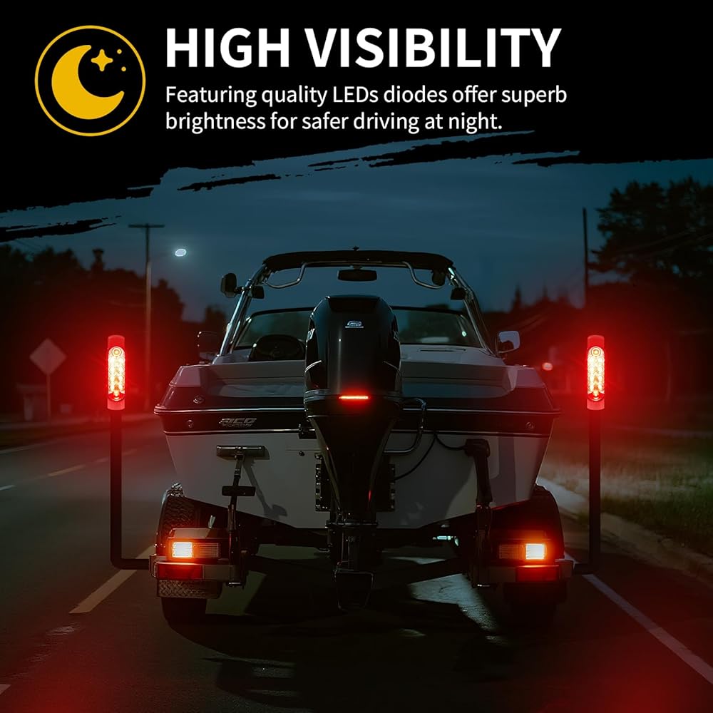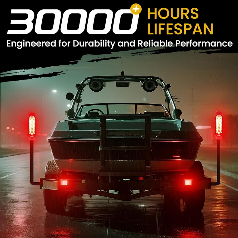 [Wide Application]: Aila boat trailer lights are perfect for guide-on posts on boat trailers, ski marine fishing boats, sailboat trailers, pontoon boats, kayaks, towing vehicles, and even tractors. Note: Tow vehicles must have a 4-way plug, and these lights are not compatible with motorcycle trailer wiring.