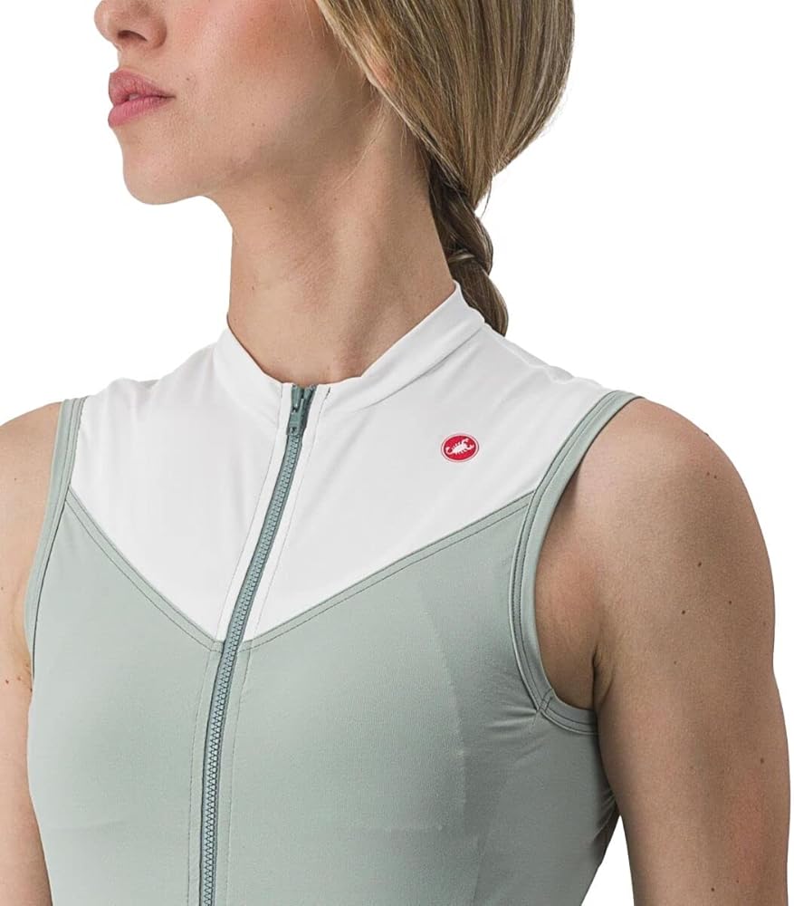 Streamline your hottest rides with this sleeveless jersey Form-fitting cut molds to your body in a riding position Convenient built-in sports bra simplifies getting ready Breathable Softlex fabric is soft and supple against the skin 3 rear pockets house a phone and your favorite energy gels Full-length zipper allows for heat dumps mid-ride