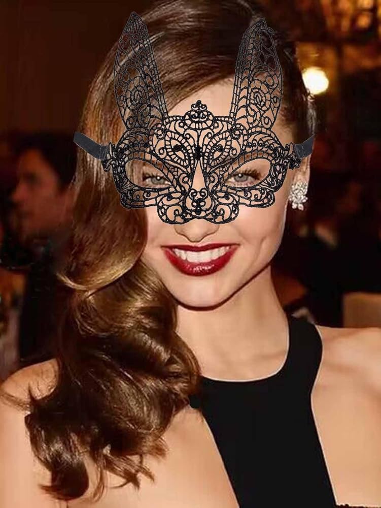 قناع تنكري للقطط للسيدات، قناع القطة السوداء البندقية، قناع تنكري شبكي من الدانتيل، إكسسوار الهالوين التنكري للنساء