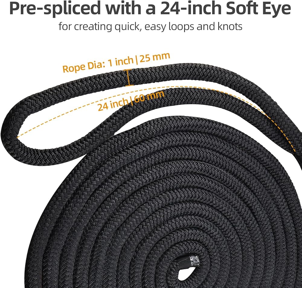 Mooring marine rope is resistant to saltwater,gas,oil,acids,abrasion and resists sunshine better than other synthetics Package 2 x Double Braid Nylon Boat Dock Line ( 1inch x 35feet )