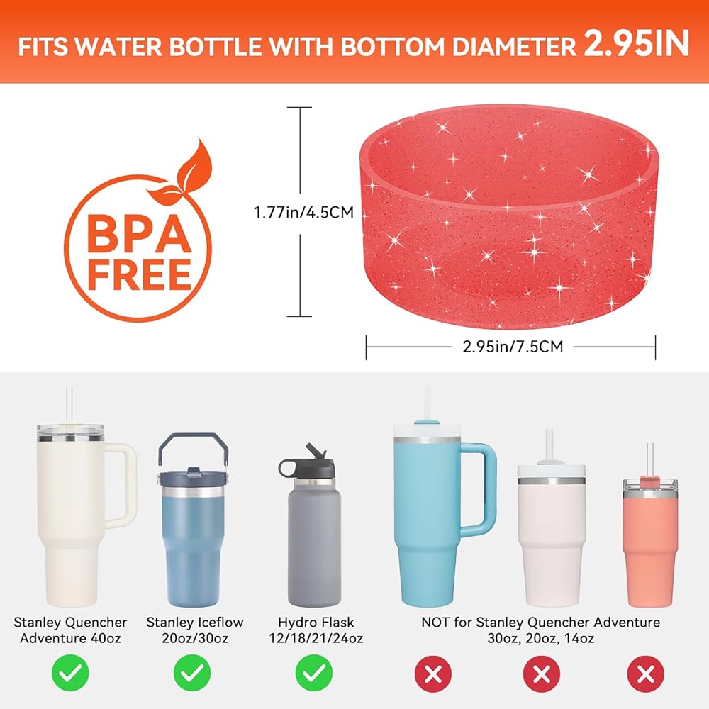 【سيليكون عالي الجودة】الجزء السفلي من المطاط اللامع لزجاجة المياه مصنوع من مادة السيليكون الناعمة والمرنة الملائمة للطعام والتي تدوم طويلاً. لغطاء سيليكون ستانلي لزجاجة مياه 40 أونصة لستانلي 40 أونصة لملحقات قارورة مائية للكم السفلي لقارورة هيدروفلاسك من السيليكون لحذاء يتي لمصدات ستانلي بهلوان قاع سيليكون لواقي سفلي ستانلي بهلوان لقارورة مائية 24 أونصة لملحقات ستانلي كوينشر لغطاء كأس ستانلي للهيدرو التمهيد زجاجة قارورة.