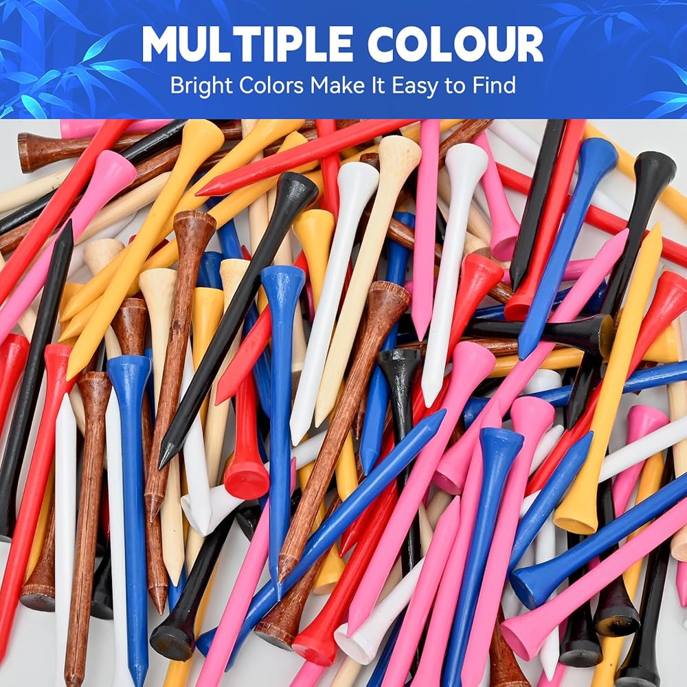 Very durable and colorful wood golf tees, easy to be found on grass, Pointed bottom is solid, strong and durable